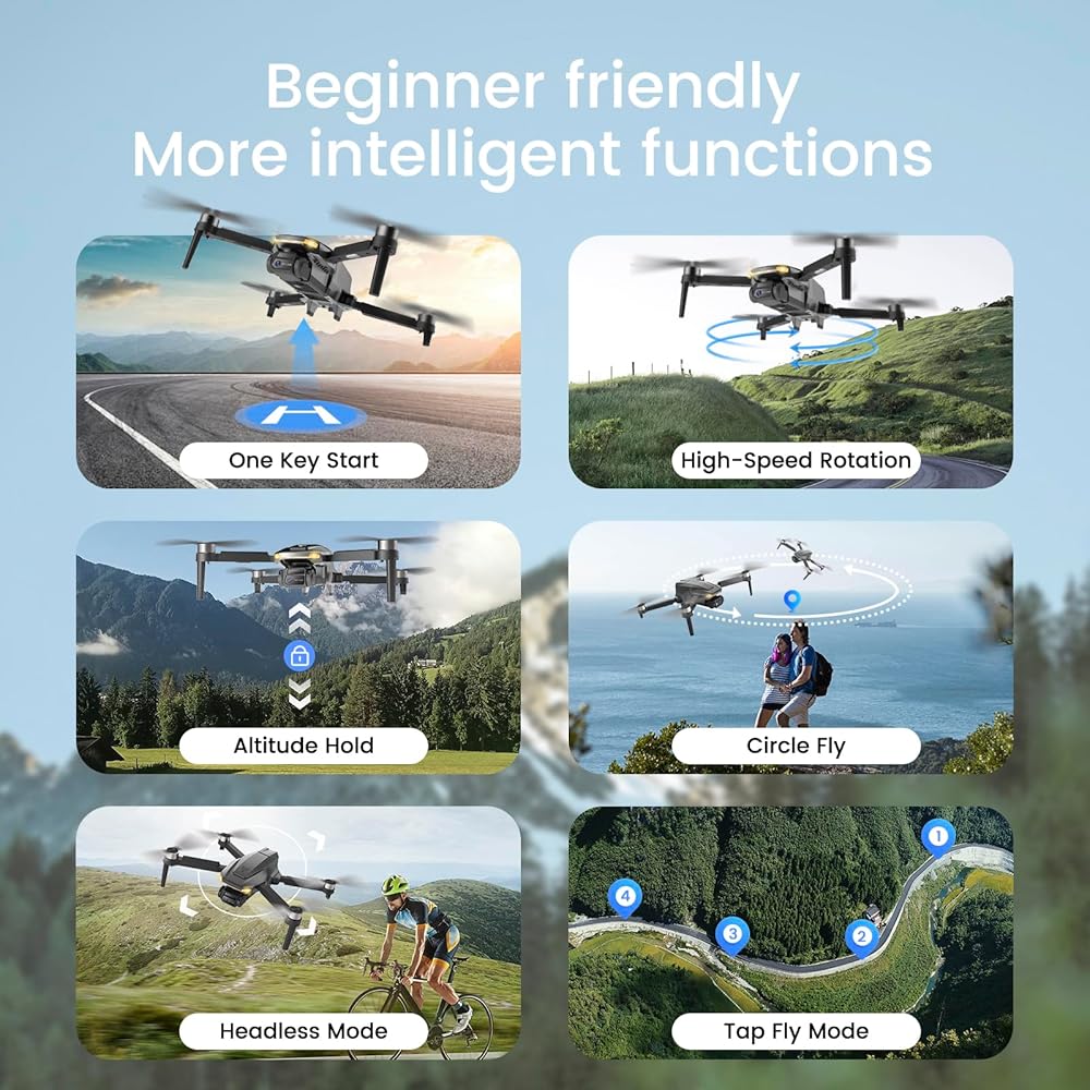 【ذكية وسهلة التحكم】لدينا دروس فيديو مفصلة وأدلة شاملة لمساعدتك على تعلم كيفية استخدام الطائرة بدون طيار. هذه الطائرة بدون طيار RC المزودة بكاميرا مناسبة جدًا للمبتدئين والأطفال، حيث أنها تتميز بميزات سهلة الاستخدام مثل الإقلاع/الهبوط بمفتاح واحد، وتحديد موضع التدفق البصري وتثبيت الارتفاع. الطائرة بدون طيار مزودة بوظيفة سياج إلكتروني، وسوف تتلقى مطالبة إذا تجاوزت نطاق جهاز التحكم عن بعد. يلغي الوضع بدون رأس الحاجة إلى النظر في الاتجاه الأمامي، حيث تحدد الطائرة بدون طيار الاتجاه الأمامي بالنسبة لموقعك.