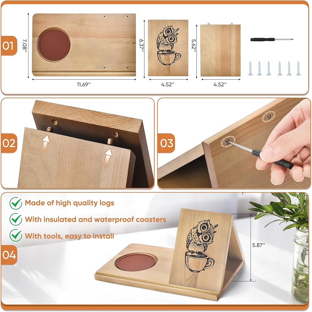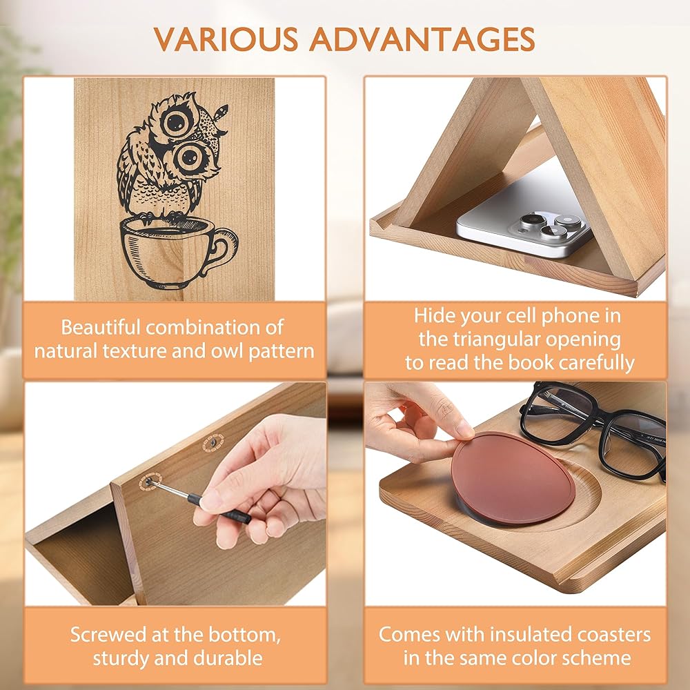 🦉أنماط رائعة وحبوب طبيعية: البومة، التي تمثل الحكمة والبصيرة، تمتزج بشكل مثالي مع حبيبات الخشب الطبيعية لشعور دافئ ومريح. أيضًا، كل حامل كتب للقراءة في السرير مصنوع يدويًا لذا قد تكون هناك اختلافات، ولكن هذا يعني أيضًا أن ما لدينا فريد من نوعه.