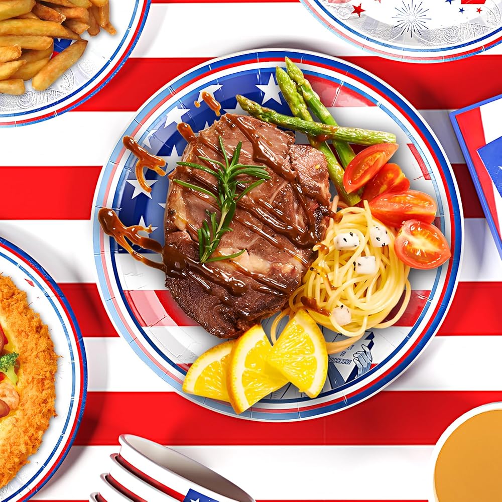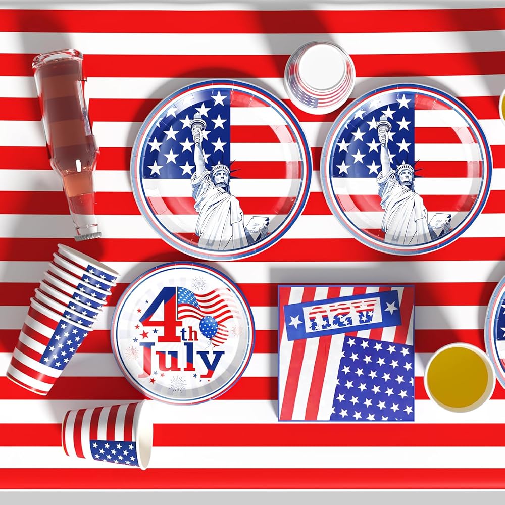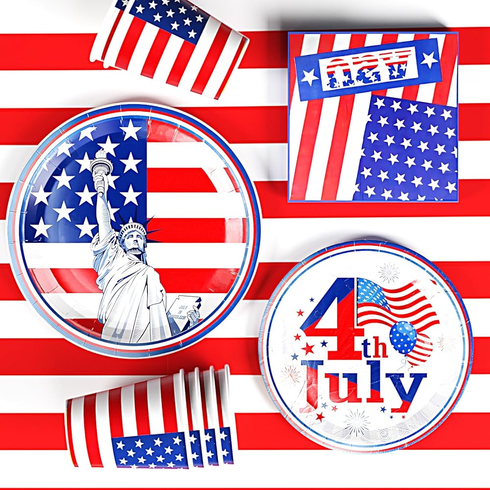 • 4th of July Accessories: Our 4th of July plates and napkins not only serve as a perfect addition to 4th of July-themed party decorations but also complement other 4th of July party supplies such as 4th of July tablecloth, banners, and more. Please contact us with any questions or concerns you may have about the patriotic plates and napkins.