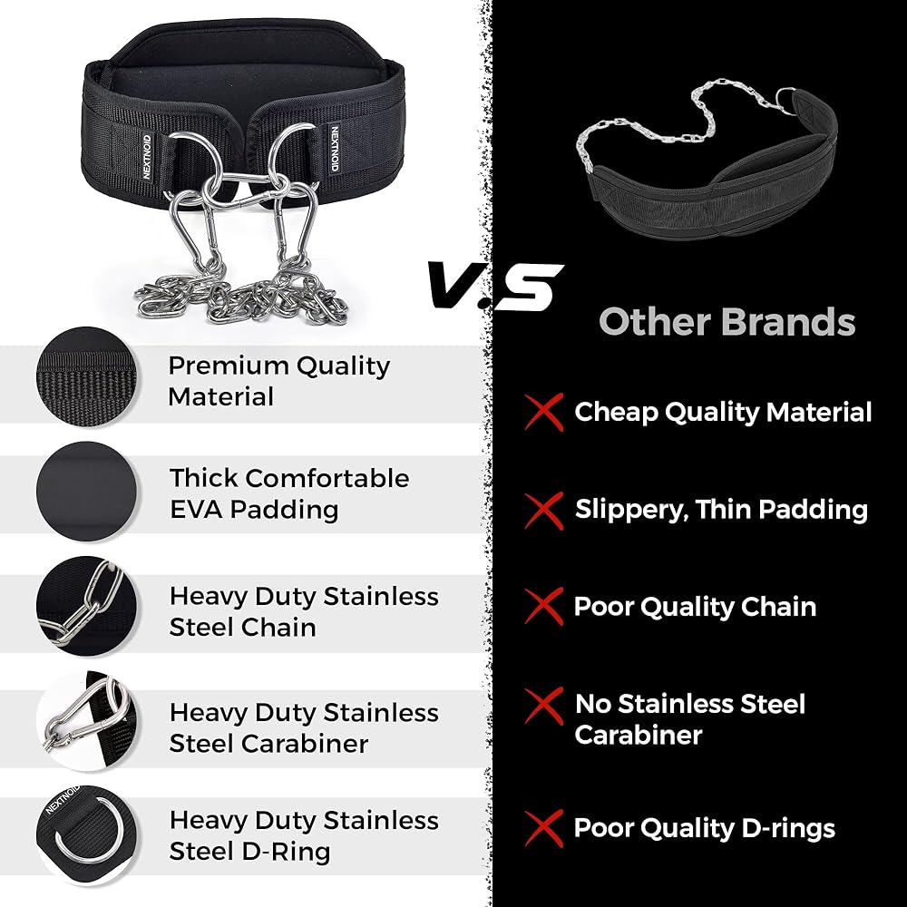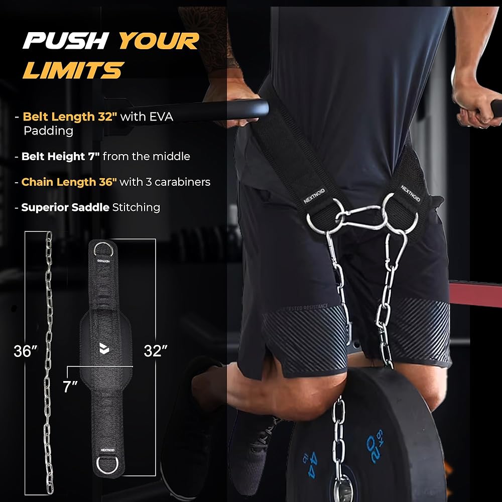 ارفع المزيد من الوزن - حطم أفضل ما لديك مع حزام الغطس المثقل من Nextnoid مقاس 32 بوصة مع السلسلة! أضف المزيد من الألواح إلى رفع وزن جسمك مثل الانخفاضات والسحب والذقن وحزام القرفصاء بحزام الورك عن طريق تحميل سلسلة الفولاذ المقاوم للصدأ السميكة شديدة التحمل على أحزمة رفع الأثقال هذه للرجال والنساء.