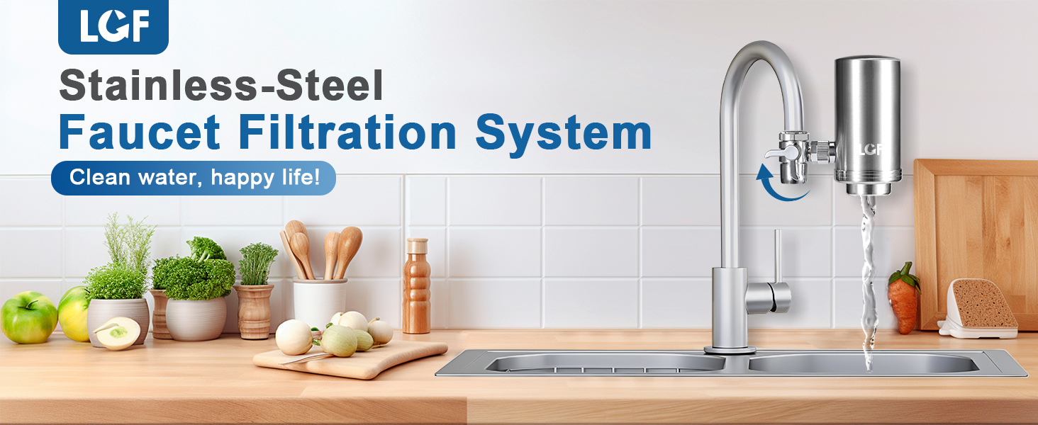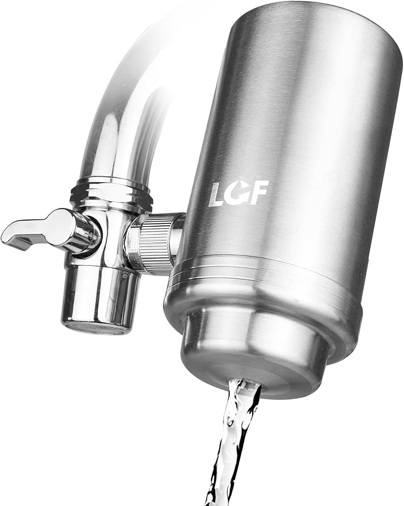 فلتر مياه صنبور من الفولاذ المقاوم للصدأ يدور 360 درجة من LCF - تدفق عالي، فلتر مياه الصنبور معزز بالمعادن، يقلل الكلور والمعادن الثقيلة والطعم السيئ، سهل التركيب، 320 جالون، حوض المطبخ المثالي