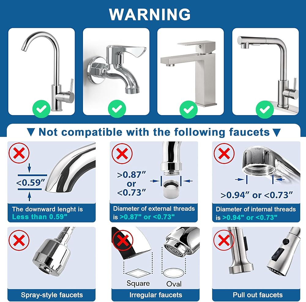 توافق واسع - وعد عالمي بالنقاء: مجهز بأربعة محولات مصممة بدقة، يضمن الفلتر الخاص بنا ملاءمة عالمية، مما يضمن أن كل منزل يمكنه الاستمتاع بالمياه النقية. ومع ذلك، تذكير لطيف: إنه مصمم للصنابير القياسية، باستثناء الحنفيات القابلة للسحب أو المحمولة باليد أو نمط الرش أو الحنفيات المزودة بأجهزة استشعار. ضمان التوافق لملاءمة سلسة.
