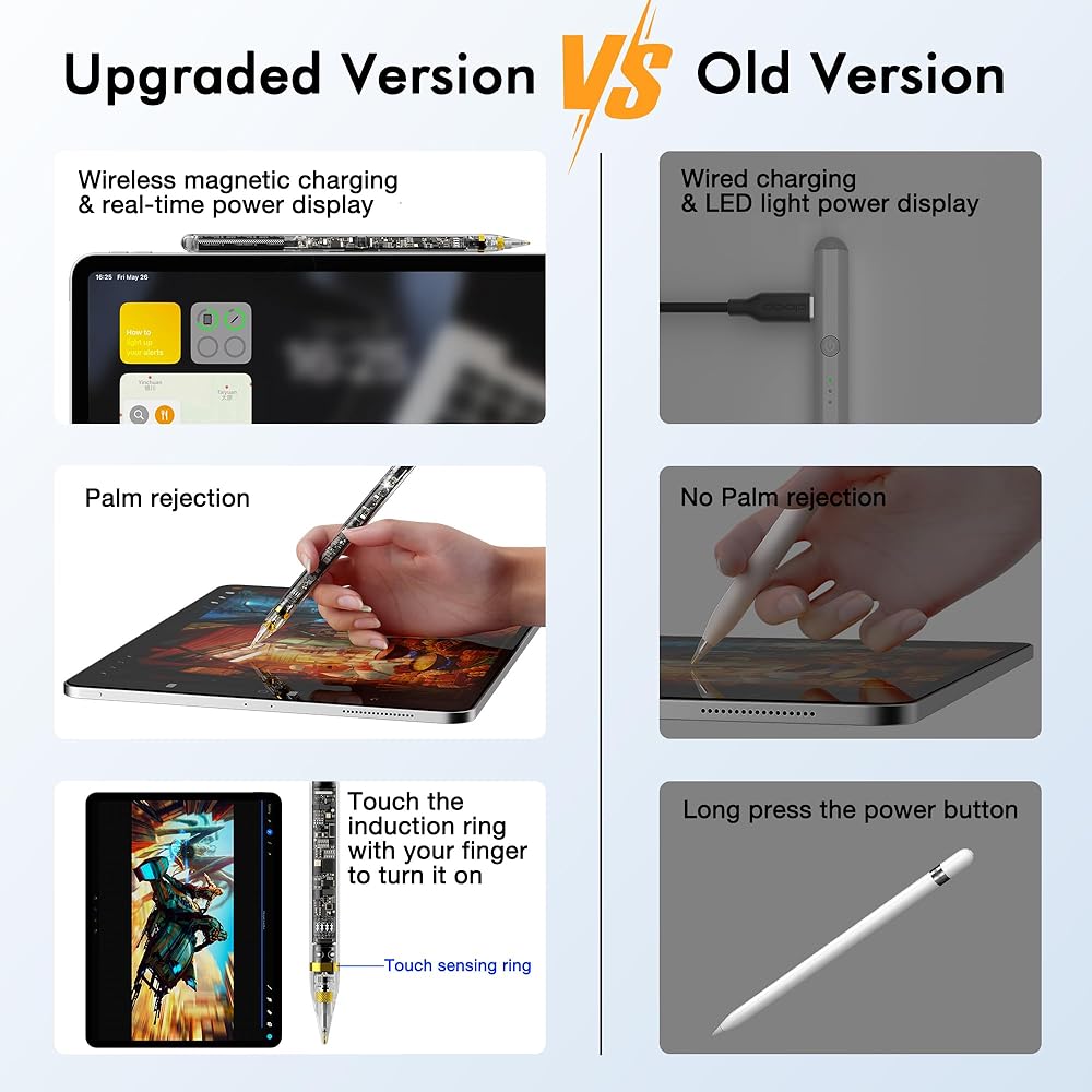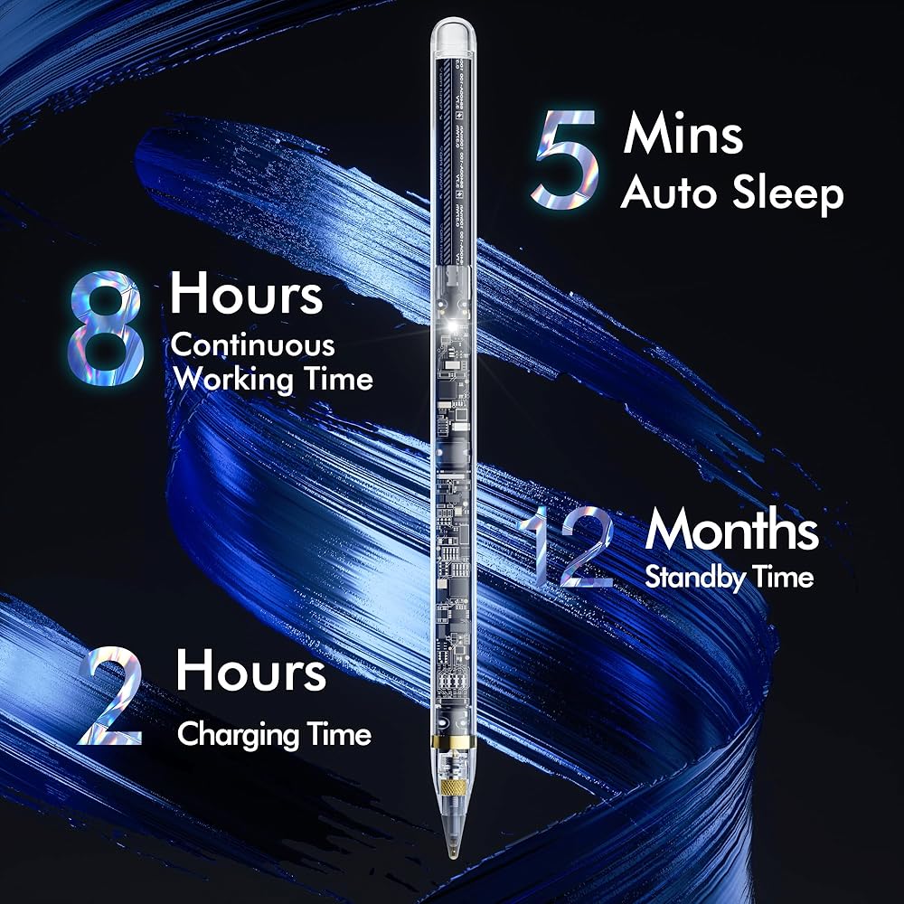 【مستقر وسهل الاستخدام】يتم تشغيل قلم القلم عن طريق لمس الحلقة المعدنية، لذا فقط قم بالتقاط القلم وابدأ في الكتابة، وسيعمل على الفور، وهو أكثر ملاءمة للاستخدام. لا يوجد تشغيل/إيقاف عرضي مقارنة بمفاتيح اللمس الأخرى. سيتم إيقاف تشغيل قلم ستايلس تلقائيًا عند عدم استخدامه لمدة 5 دقائق.
