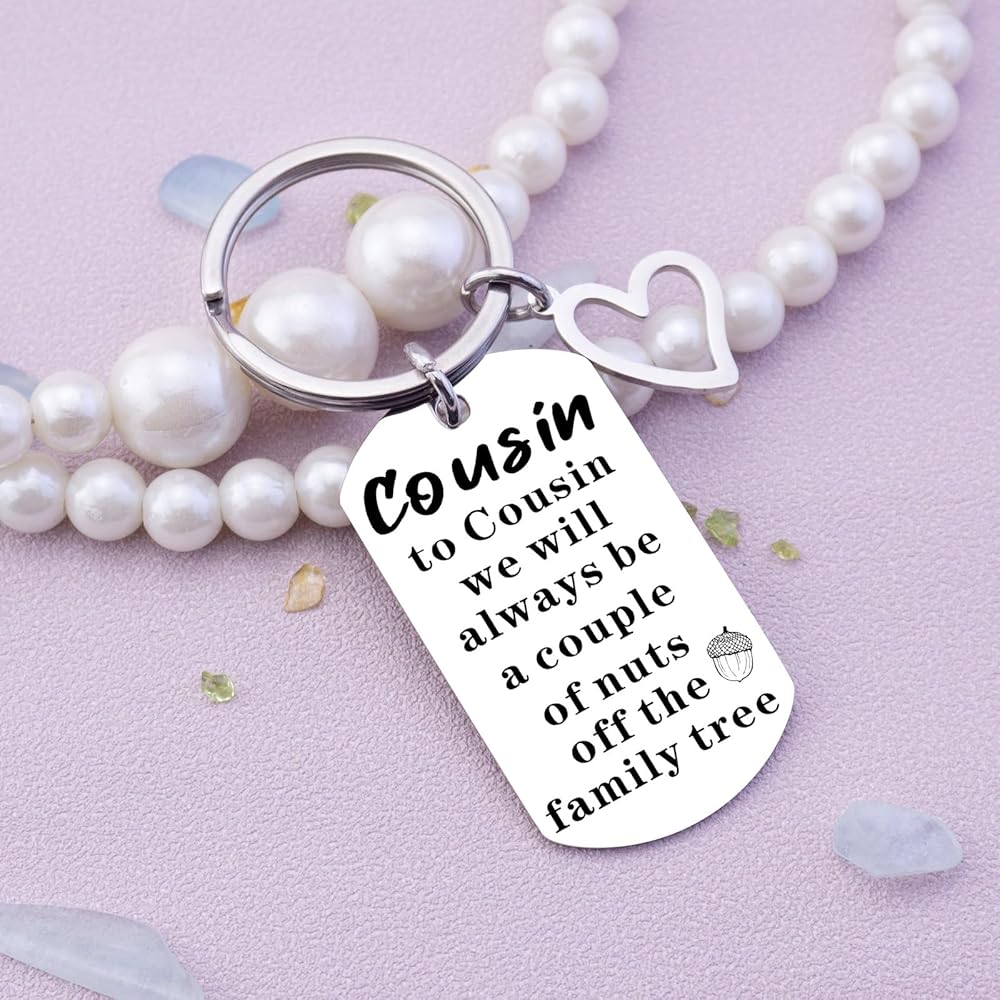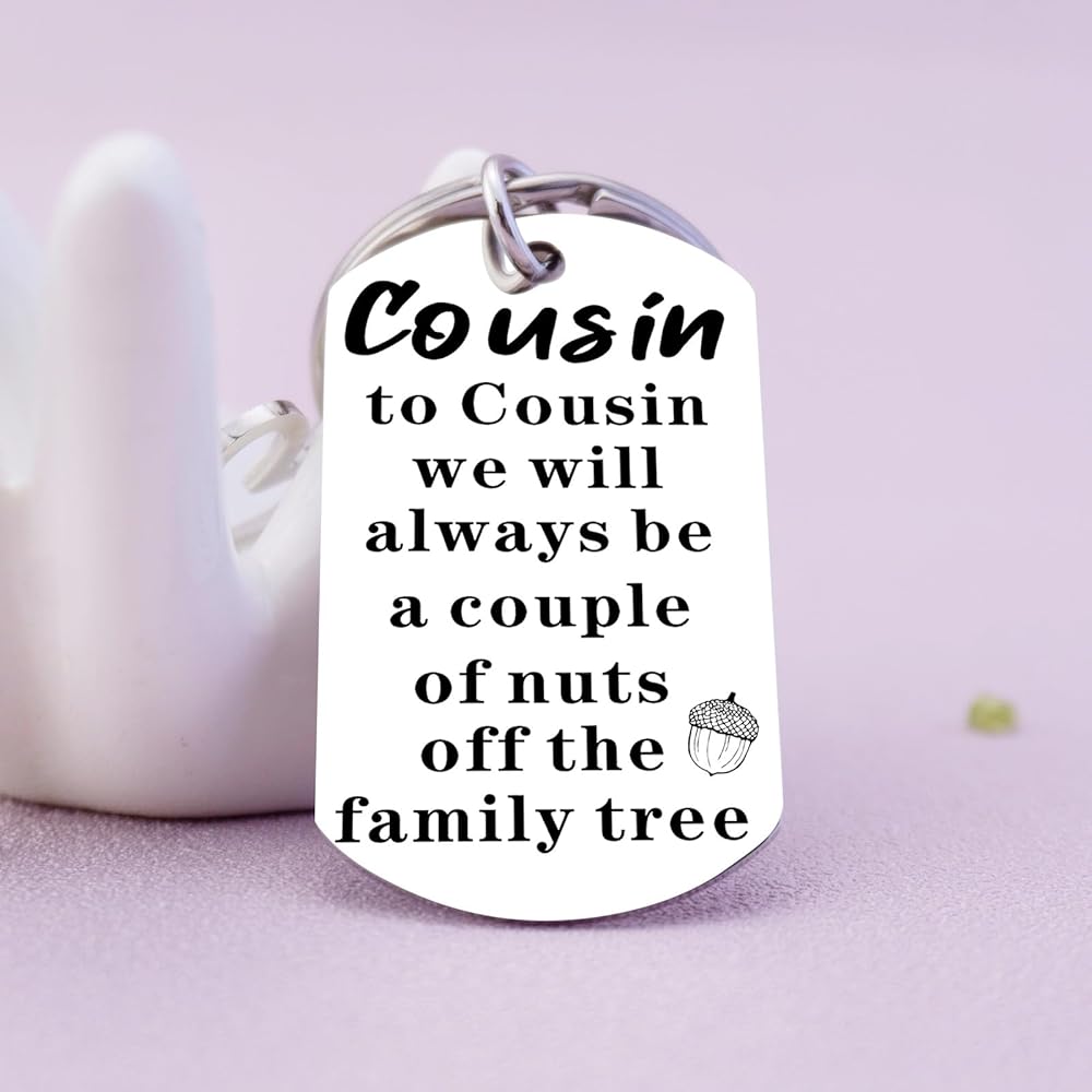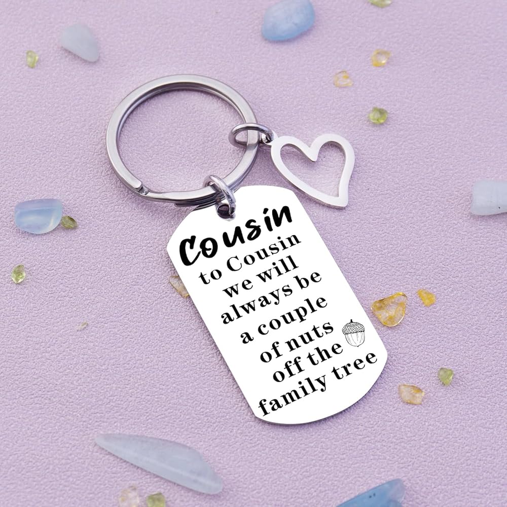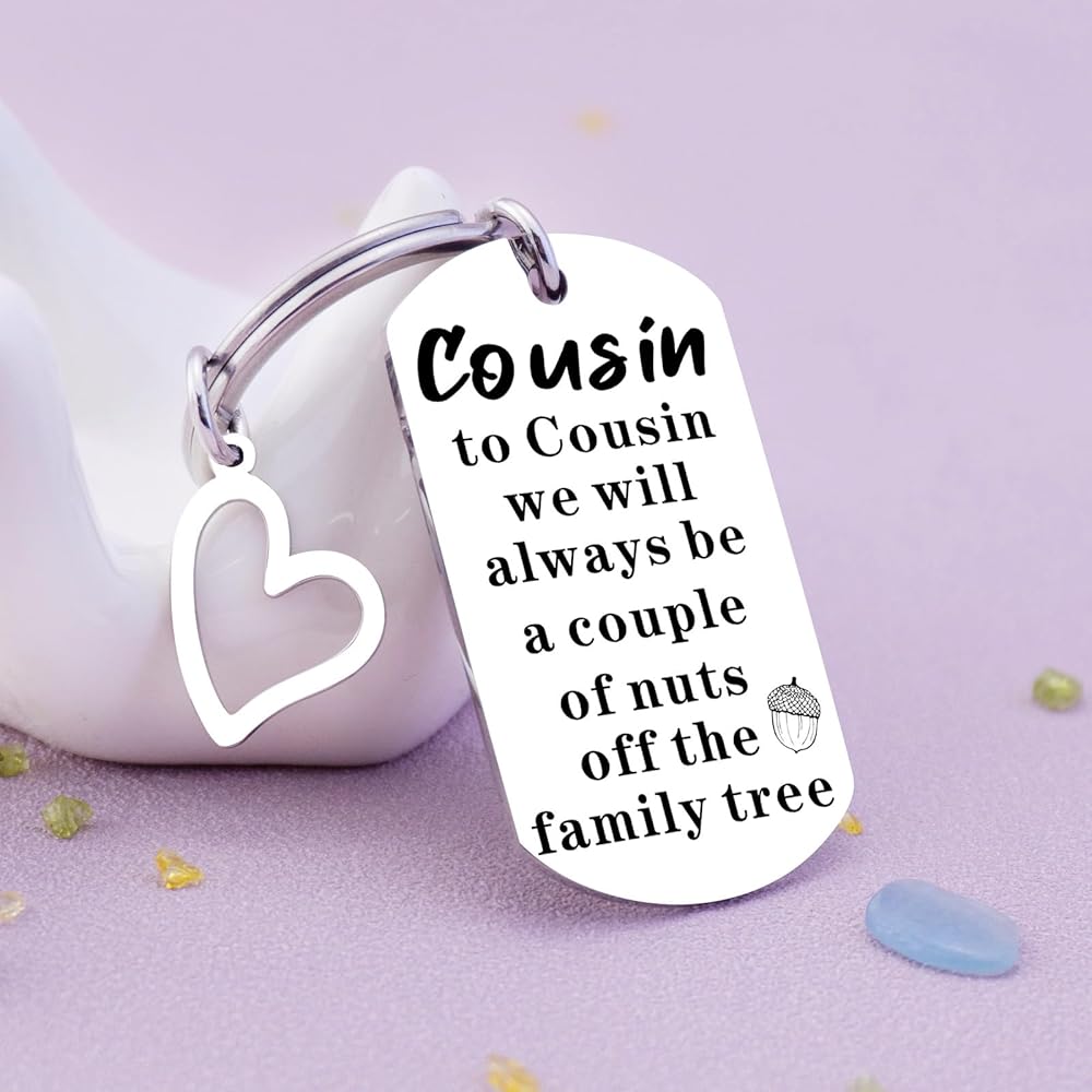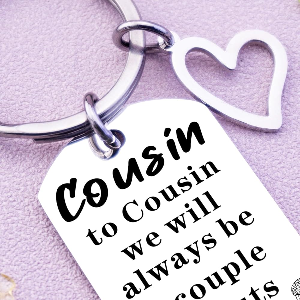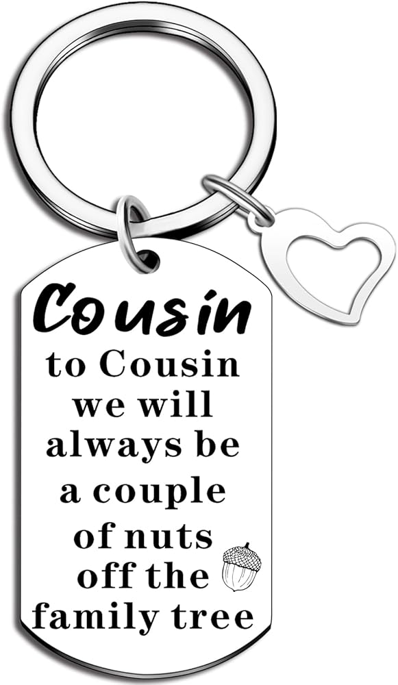 • Keychain Pendant Size: The cousin keychain features a pendant size of approximately 1 inch. It's a compact and versatile gift that can be easily carried and displayed as a reminder of your special connection.
