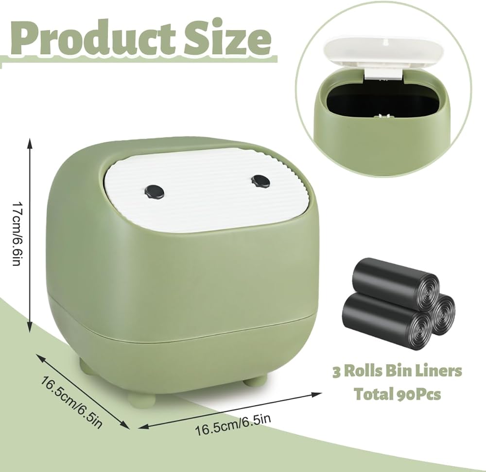 【سلة مهملات صغيرة لطيفة】 سلة المهملات الصغيرة الخاصة بنا بغطاء يبلغ طولها 6.5 بوصة × عرض 6.5 بوصة × ارتفاع 6.7 بوصة، السعة: 0.5 جالون، لونين للاختيار من بينها، كما أننا نشتمل على 90 كيس قمامة. سلة المهملات المحمولة هذه يمكن أن تساعدك في تنظيم نفايات الورق ومستحضرات التجميل وأرضيات القهوة وقشور الفاكهة وما إلى ذلك، صغيرة وخفيفة الوزن، مثالية لتزيين الحمام والمطبخ وما إلى ذلك، والحفاظ على سطح المكتب الخاص بك مرتبًا كل يوم.