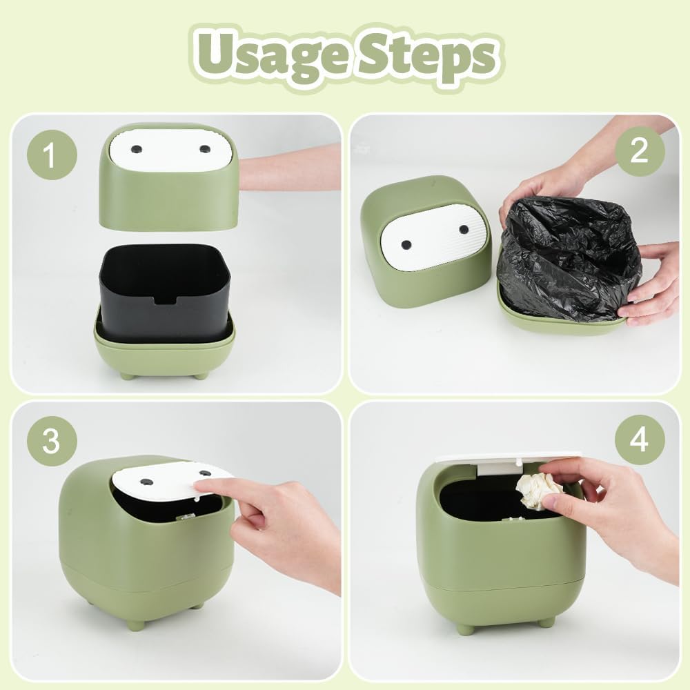 【تصميم فريد من نوعه】 سلة المهملات المكتبية اللطيفة هي تصميم داخلي وخارجي مزدوج الدلو، والذي يمكن تثبيته لإخفاء أكياس القمامة، وفتحة سلة المهملات هي نوع الضغط، اضغط برفق للأعلى، ثم اضغط على إغلاق، والذي يمكن أن يمنع الرائحة بشكل فعال ويخلق بيئة منعشة لك. الجزء السفلي من سلة المهملات يمكن أن يدعم الجزء السفلي من 4 أقدام مضاد للانزلاق، وليس من السهل تفريغه، لمنع إلقاء القمامة.