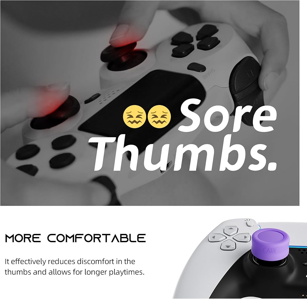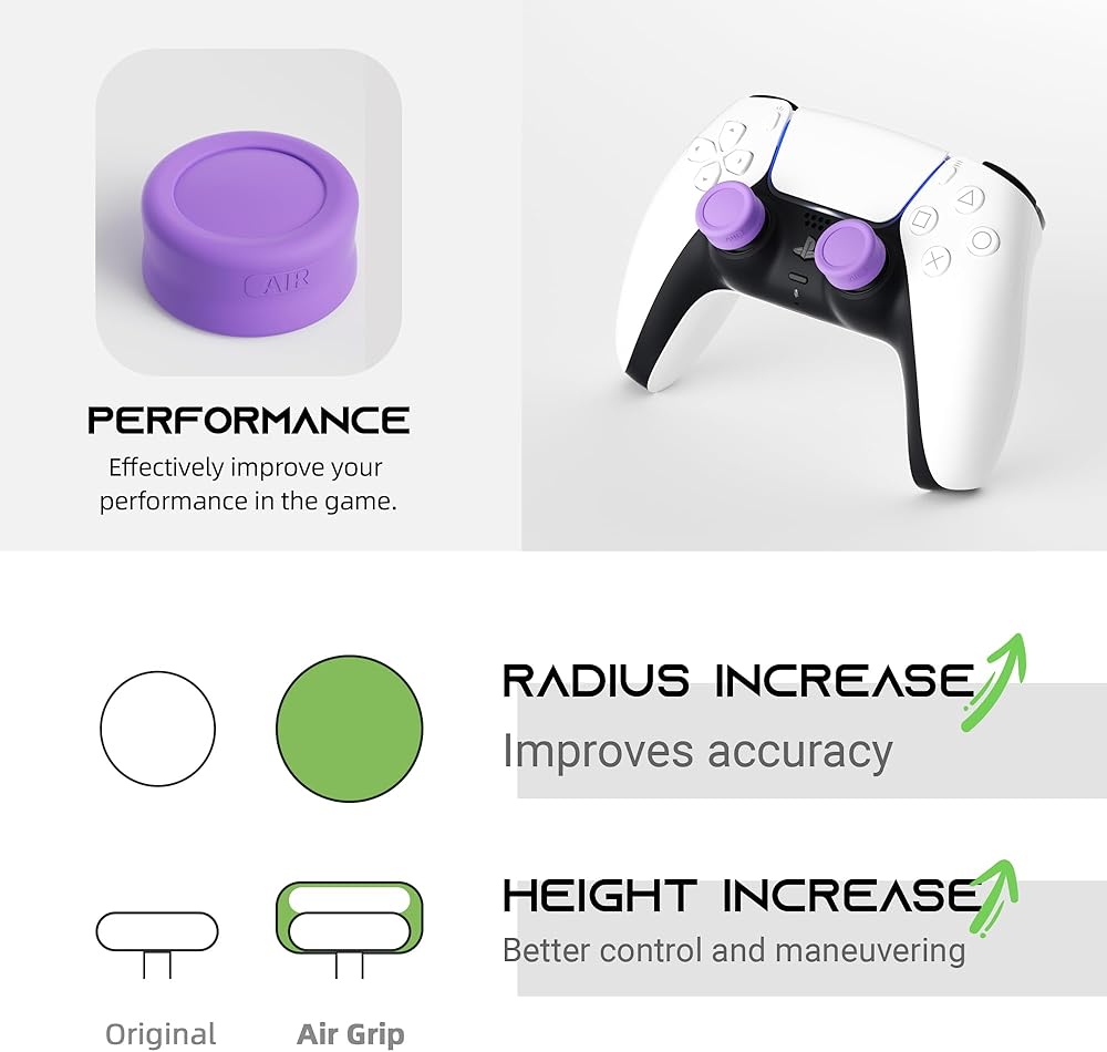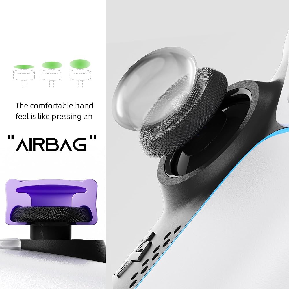 • 【Improved Accuracy&Increase Comfort】Adding extra 4.4 mm in height on your thumbstick to increase friction,provide more accuracy and sensitivity by adding extra height and active radius.The comfy thumb grip keeps your thumb in place for more controlled movement.