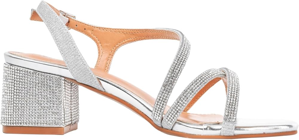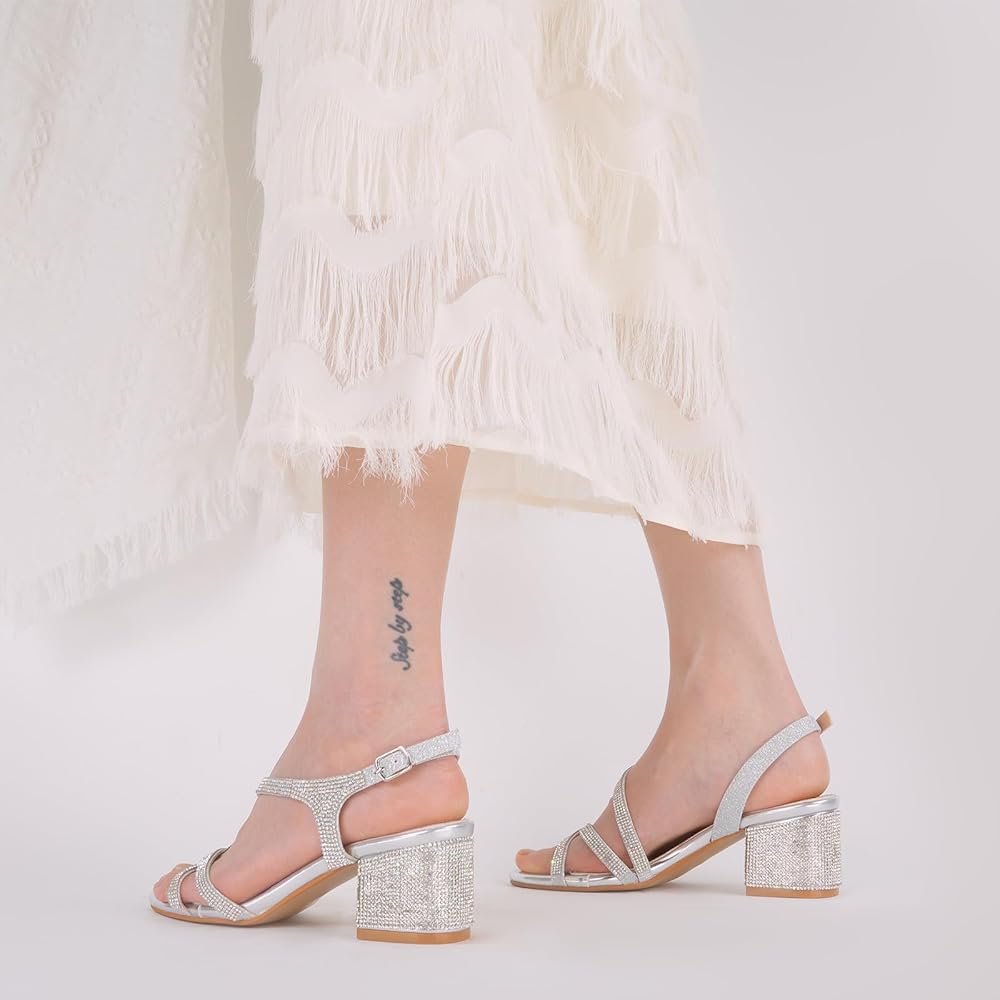 لامعة وأنيقة: تتميز هذه الصنادل الرسمية بزخارف من حجر الراين اللامعة التي تزين الكعب والأشرطة، مما يخلق تأثيرًا ساحرًا يجذب الضوء مع كل خطوة.