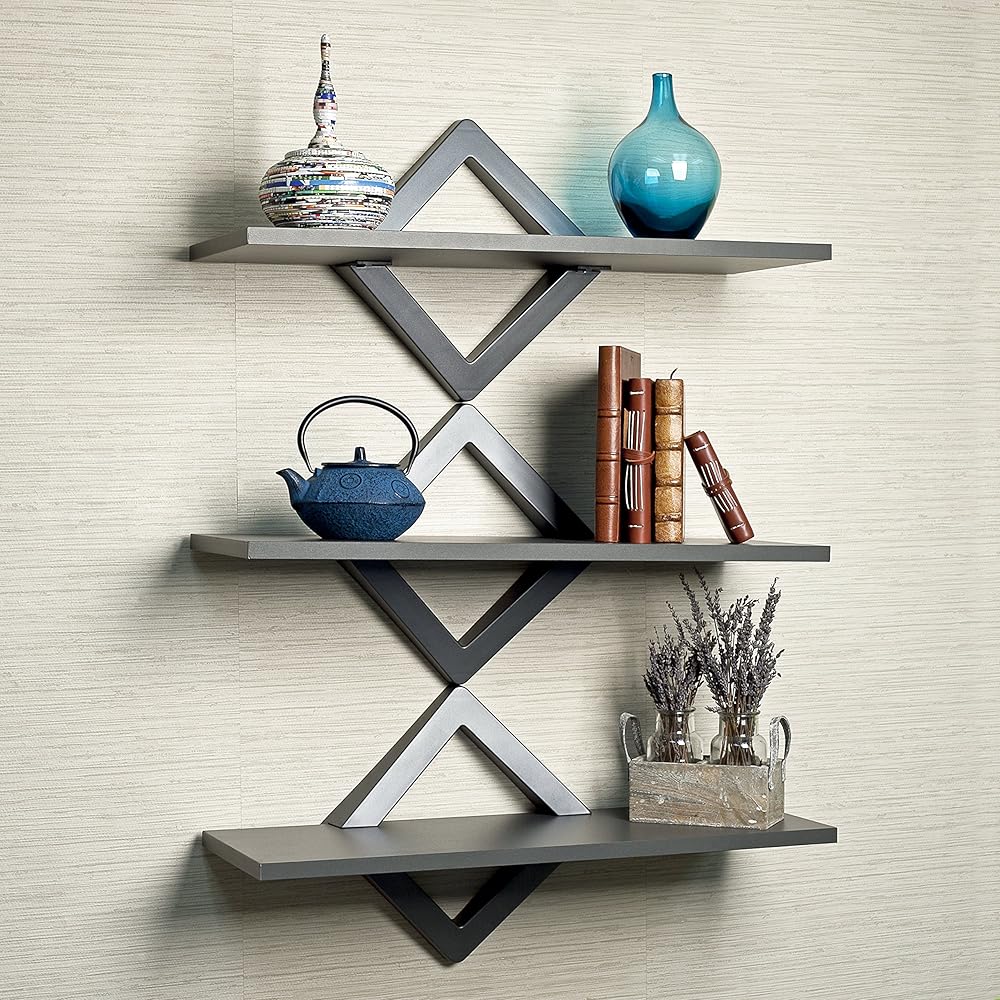 Clean lines and a modest appeal make the Danya B. Diamonds 3-Level Wall Mount Shelving System a great addition to modern urban spaces. Finished in chic laminate finish with an unobstructed silhouette, this sleek shelving system features three multi-leveled shelves that may be mounted together as one unit or as three individual shelves, depending on your requirements. With a straightforward design, the Danya B. Diamonds 3-Level Shelving System features shelves that attach to the wall with geometric ABS brackets, adding visual intrigue to your living space.