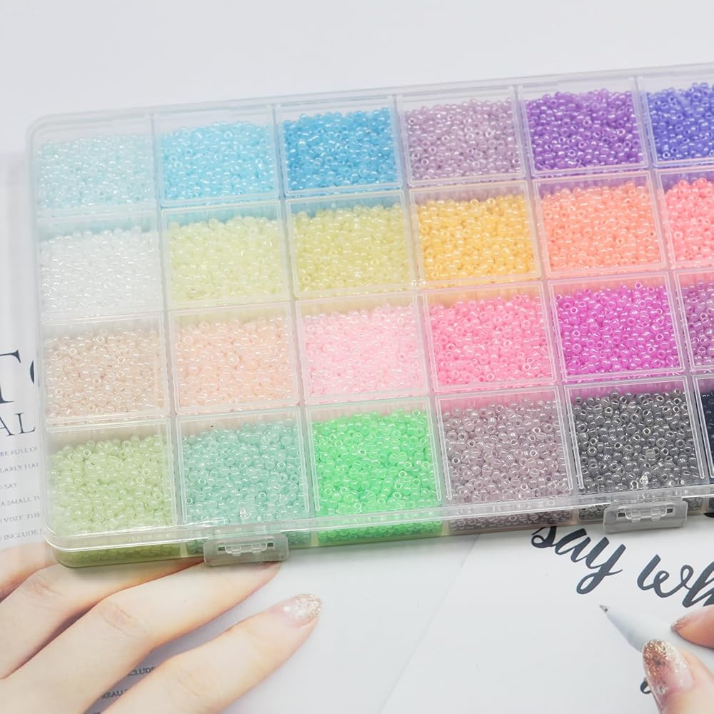 • What you get: come in the organizer box including 48 colors assorted glass seed beads, total about 48000pcs.
