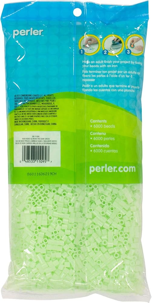 The possibilities are endless with Perler beads! Use these glow in the dark Perler Beads with a Perler pegboard and ironing paper to create one-of-a-kind crafts that are fun and easy for kids and adults! Includes (6000) green glow in the dark Perler beads. For ages 6 and up.