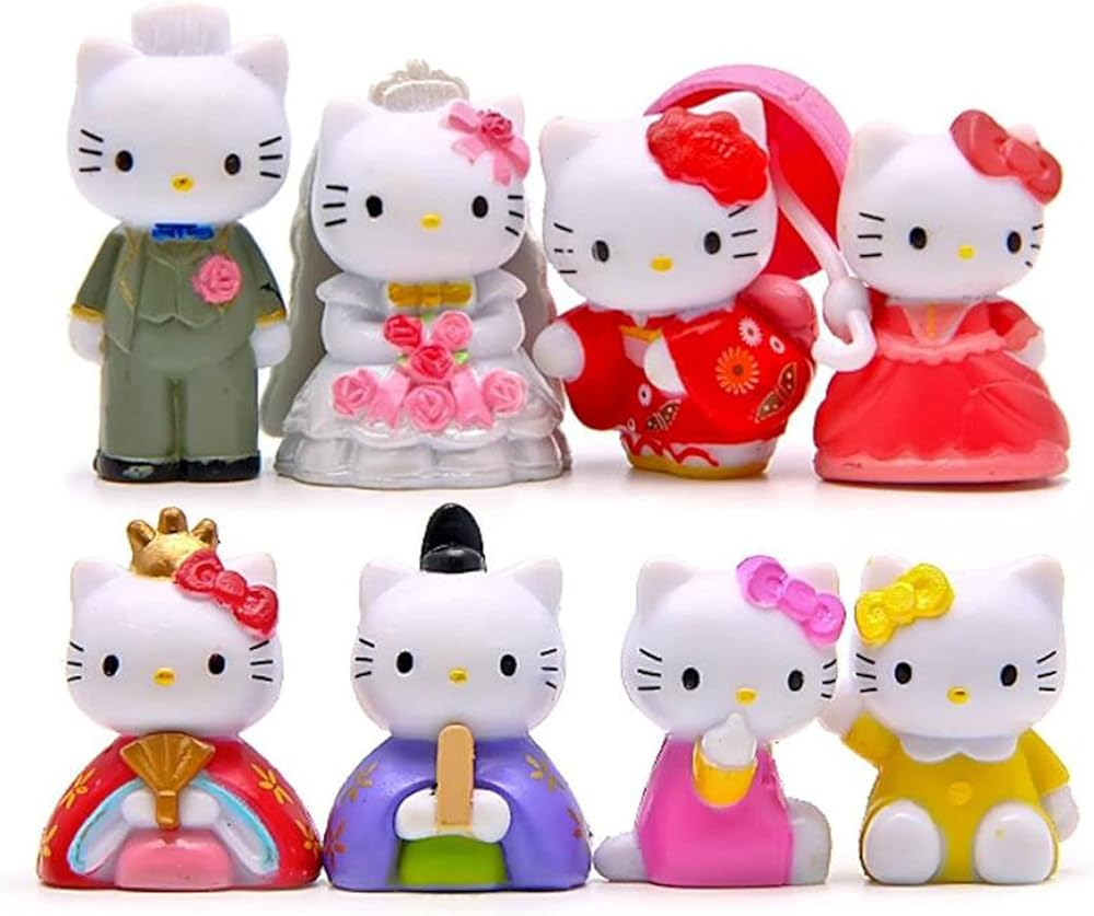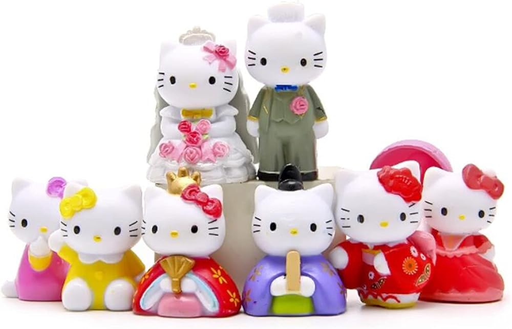 8 قطع من شخصيات القطط الحيوانية اللطيفة، مجموعة ألعاب كيتي، مجموعة ألعاب صغيرة للقطط، ديكورات حفلات الحديقة الجنية، تماثيل القطط لتزيين الكيك