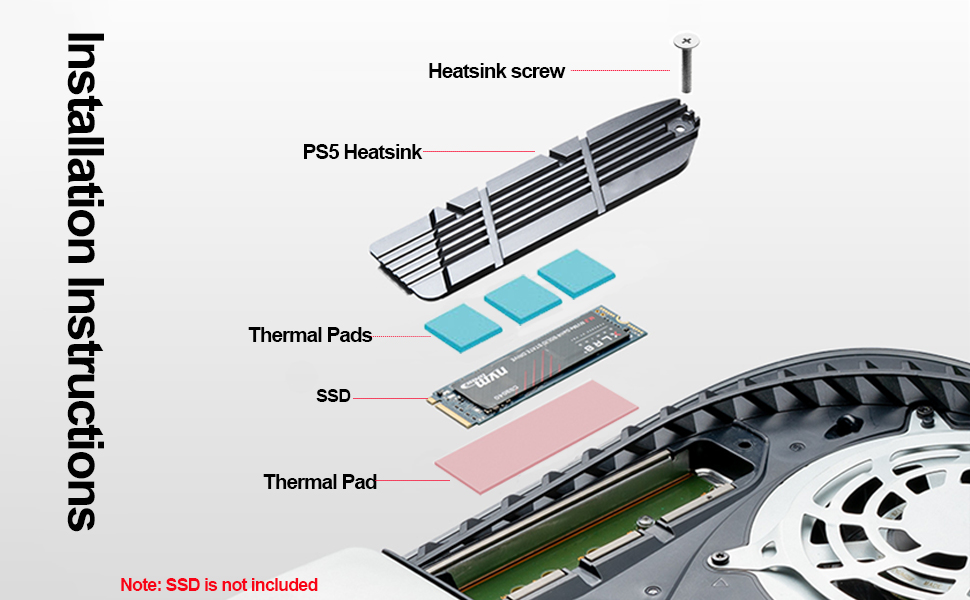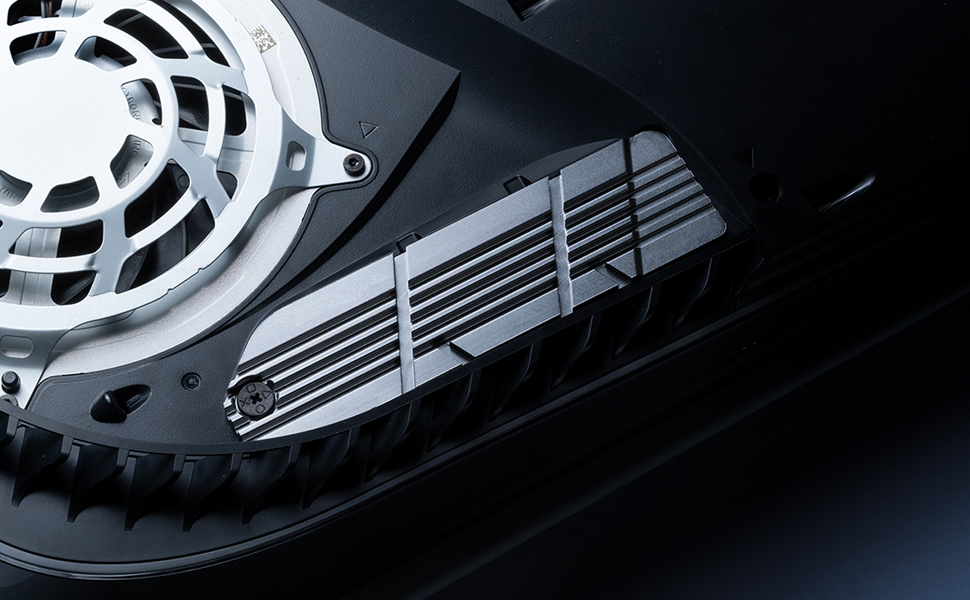 [يناسب تمامًا] - الشكل الانسيابي ملائم تمامًا لفتحة تمديد SSD، ويأتي الأداء العالي من زعانف التبريد والاستخدام الدقيق لدوران الهواء الذي تمتصه مروحة التبريد الرئيسية لجهاز PS5