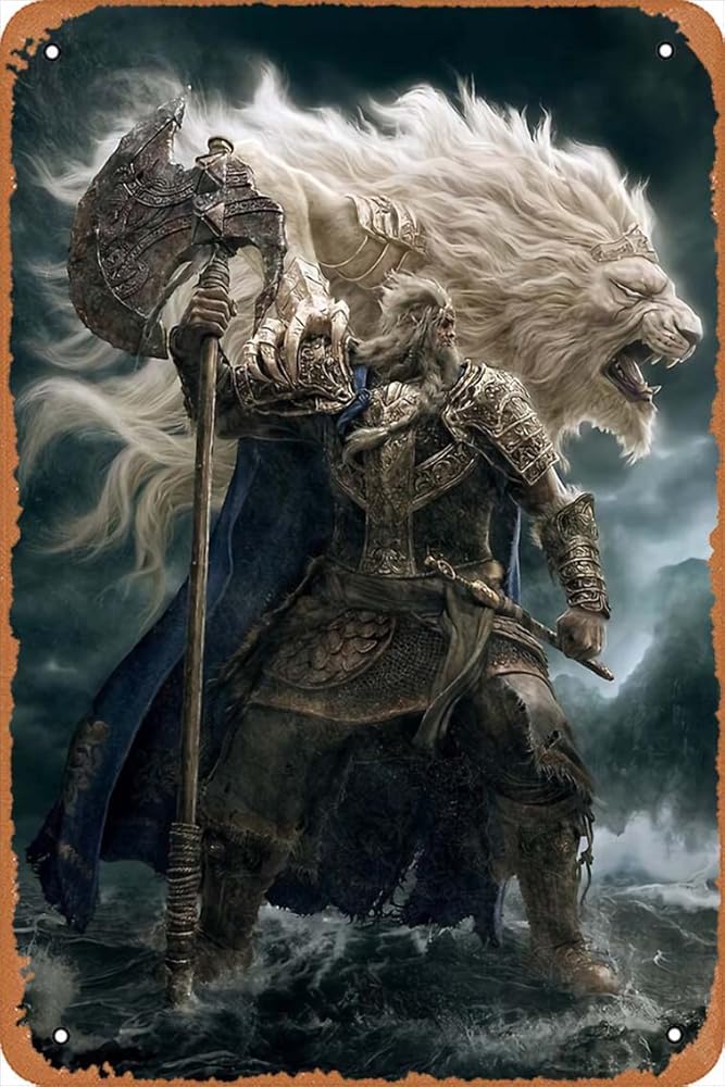 ملصق Lion King Elden Ring ملصق معدني عتيق مقاس 8 × 12 بوصة كهف رجل ديكور جدران المنزل