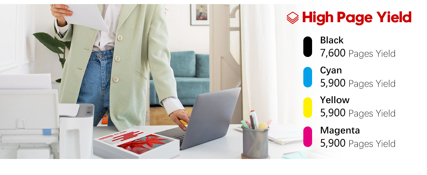 • إنتاجية عالية للصفحة: 7600 صفحة لكل خرطوشة حبر سوداء 055 055H، 5900 صفحة لكل 055 خرطوشة حبر ملونة، بتغطية 5 بالمائة من ورق A4