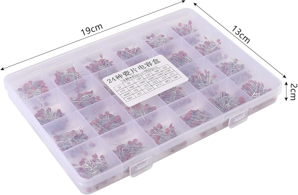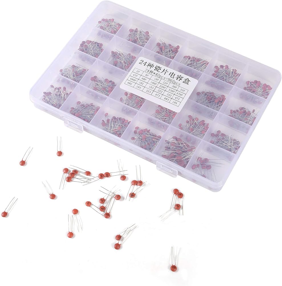Total: 24Value 960PCS DIP Monolithic Multilayer Ceramic Chip Capacitors