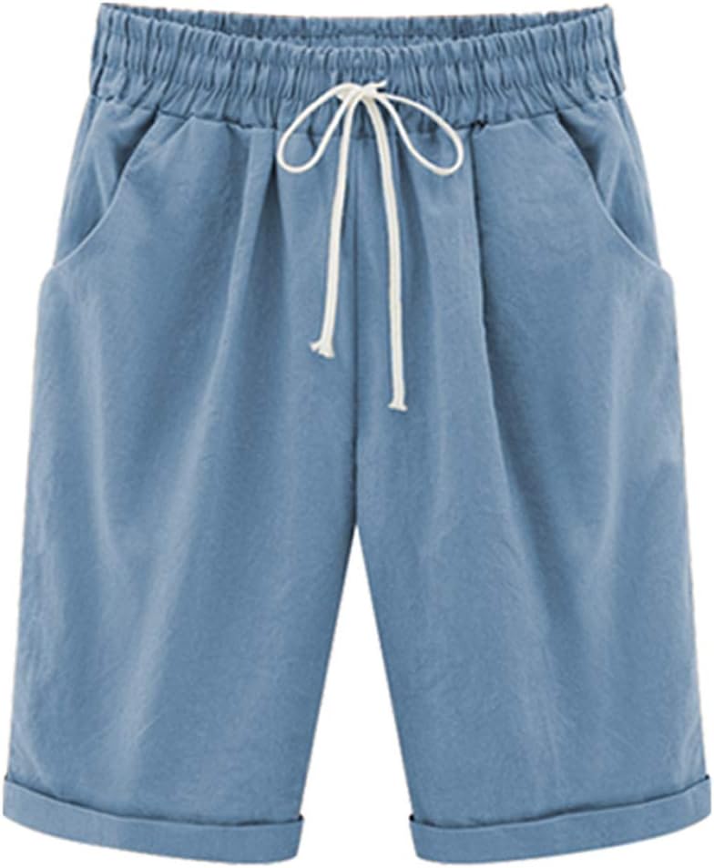 شورت برمودا نسائي كاجوال من XinYangNi بخصر مطاطي ورباط إغلاق أزرق فاتح مقاس الولايات المتحدة 4-6