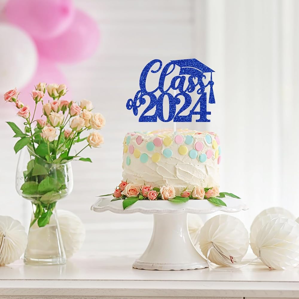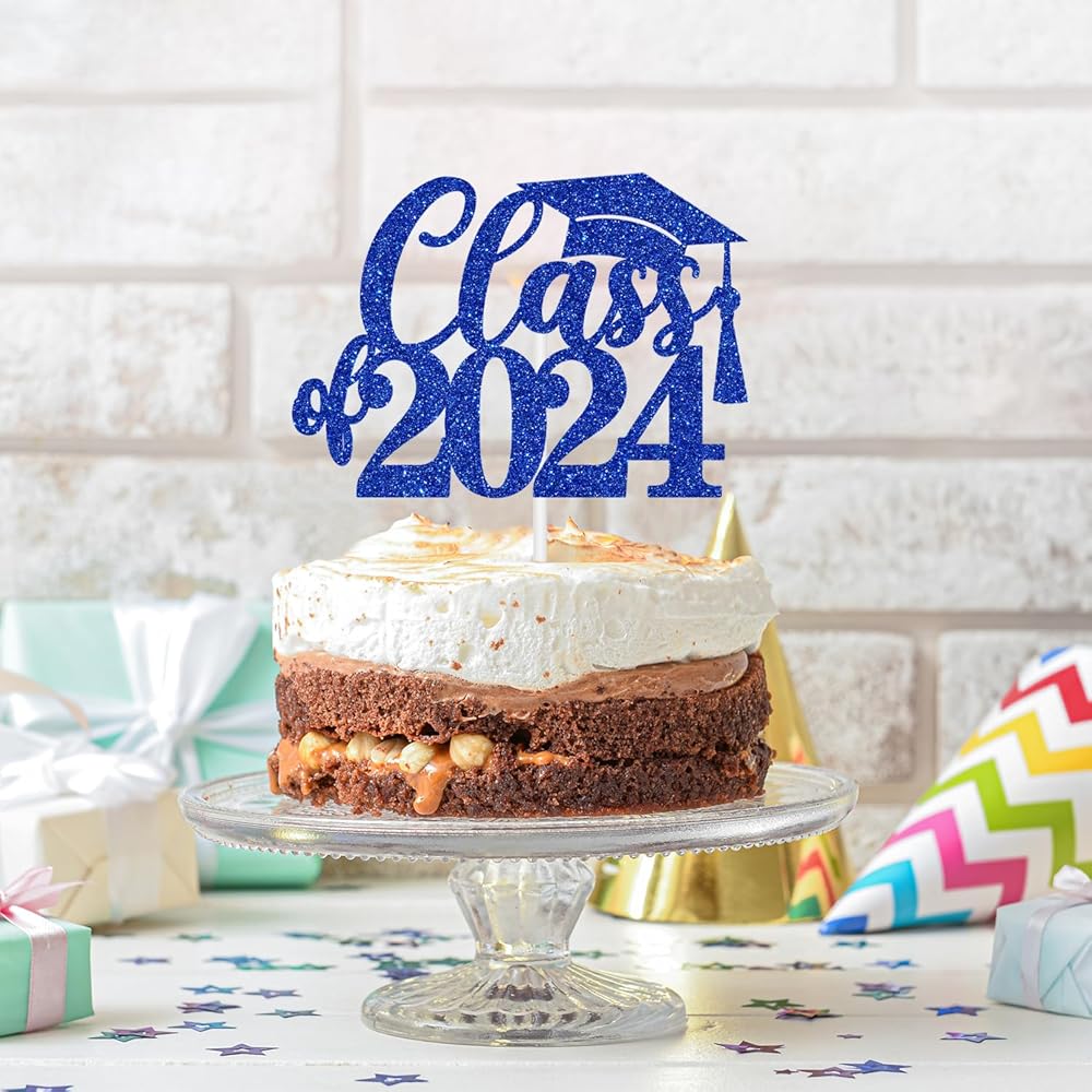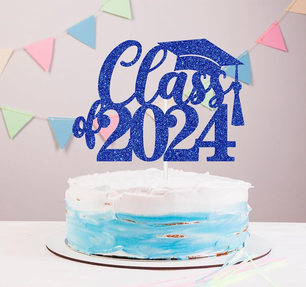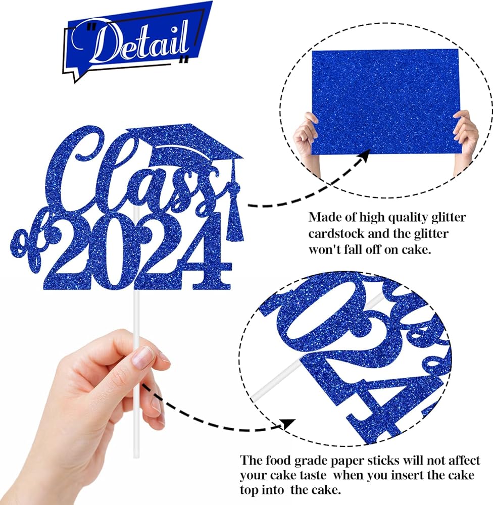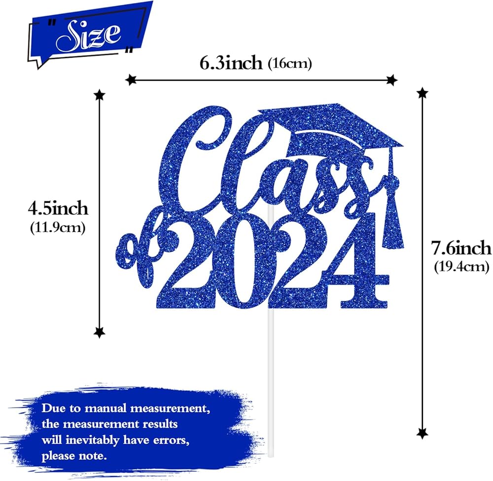 🍊Package Includes: 1 piece of blue glitter "Class of 2024" cake topper comes with a hard cardboard packaging for maximum protection.