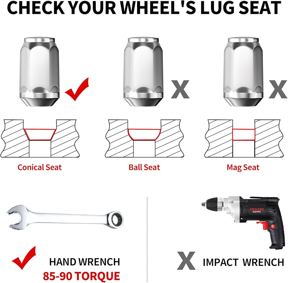 ★𝐅𝐈𝐓𝐒: المركبات ذات مسامير العجلات التي تتطلب خيطًا مقاس 14x1.5 وعجلات تأخذ مقعدًا مخروطيًا بزاوية 60 درجة مع سداسي مقاس 3/4 بوصة، ولا تناسب المقعد المغناطيسي والمقعد الكروي والمقعد الدائري. لمزيد من موديلات السيارات المتوافقة، يرجى الرجوع إلى وصف المنتج أدناه، أو اتصل بنا.