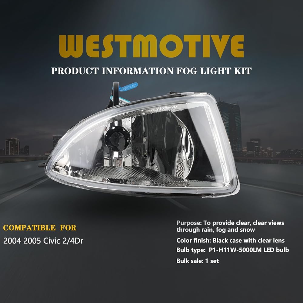 مصابيح ضباب شفافة جديدة تمامًا لعام 100% تناسب 2004 2005 Civic 2/4Dr