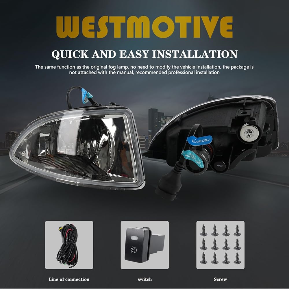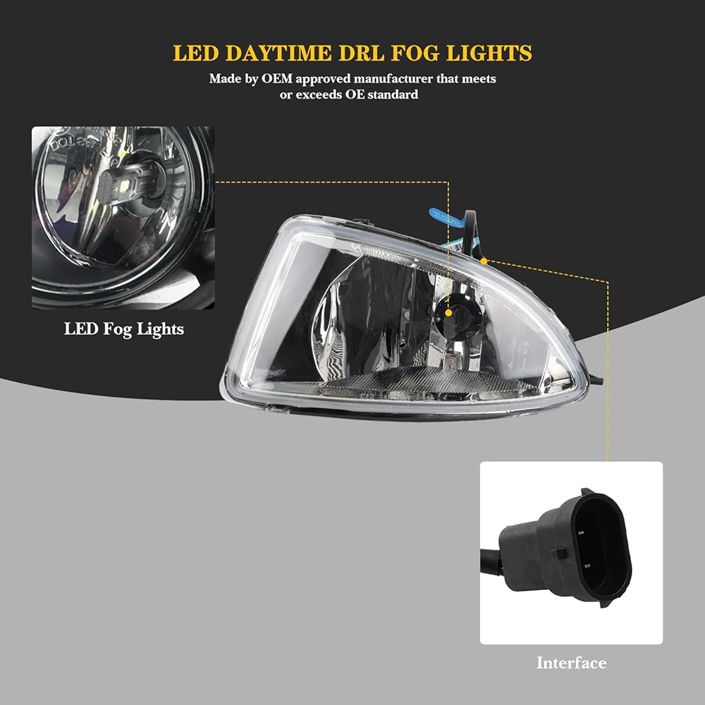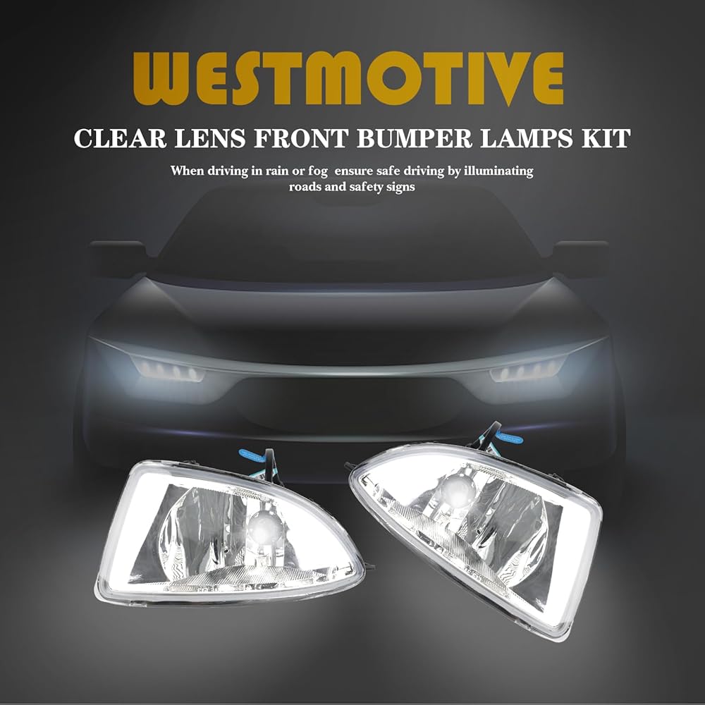 العبوة - زوج من مصابيح الضباب الشفافة، وإطار من الكروم، ومفتاح، وحزام الأسلاك، مع مصابيح H11 12 فولت 35 وات (فقط المصابيح 35 وات أو أقل متوافقة)