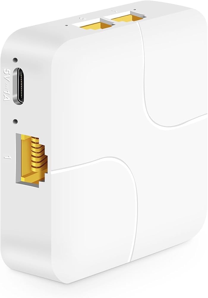 MokerLink 1 to 2 Gigabit Splitter, 3 Port Gigabit Unmanaged Ethernet Switch, Network Hub RJ45 Splitter, Mini Plastics Type-C Power with USB Cable