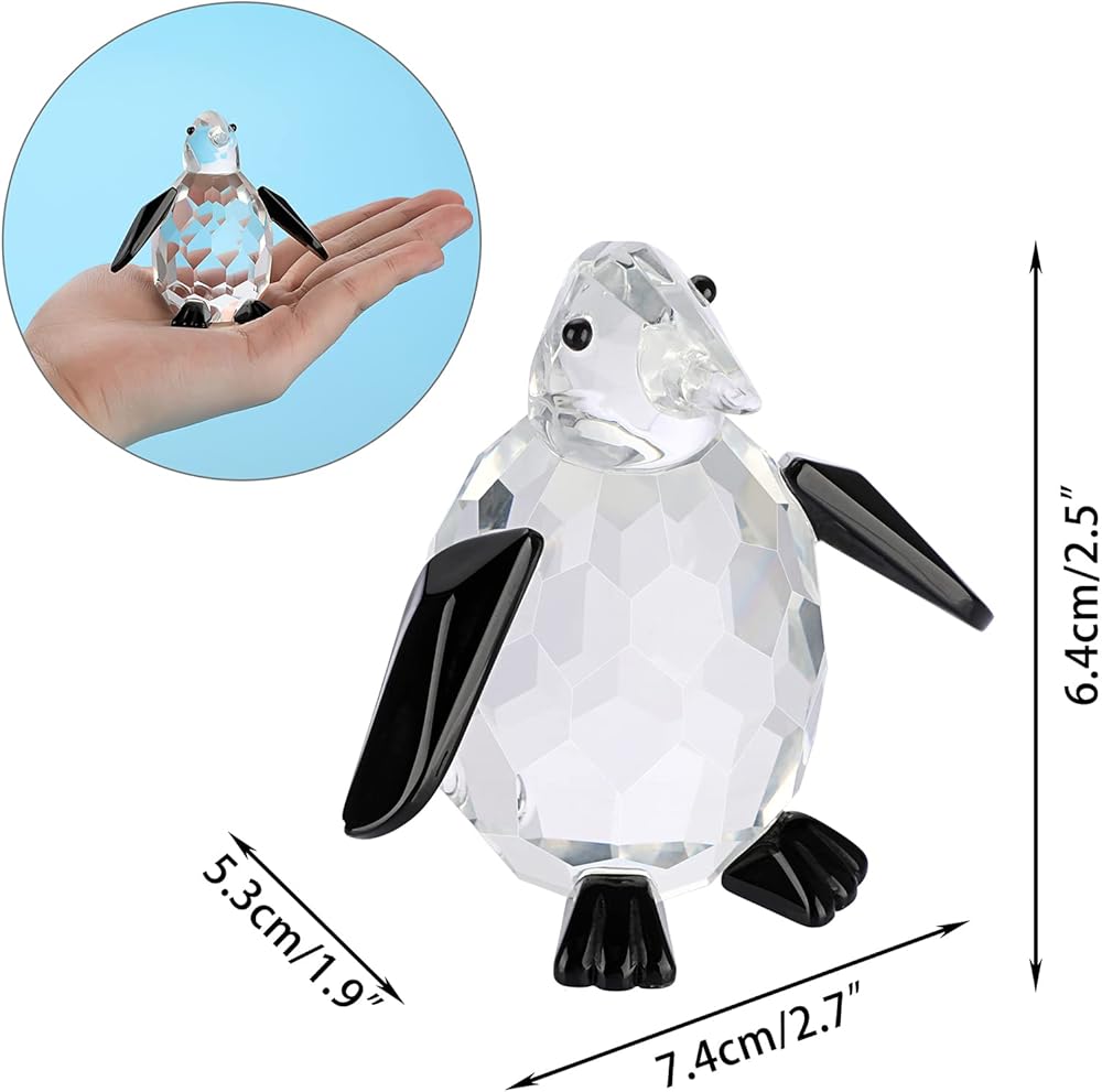 يُعد هذا البطريق الكريستالي هدية كريستالية صغيرة مثالية للدفء المنزلي أو عيد الشكر أو الكريسماس أو عيد الحب أو أعياد الميلاد أو غيرها من المهرجانات، وهو أفضل خيار لمحبي البطريق أو جامعي الحيوانات الكريستالية.