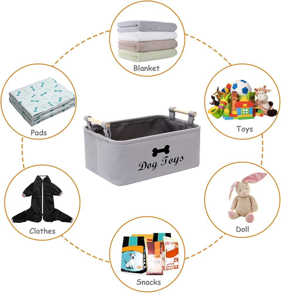 The basket is made of a high quality canvas material and can hold dozens of your dogs toys.