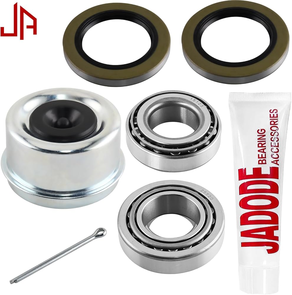 توفر مجموعة محامل محور المقطورة من JADODE ضمانًا لمدة عام واحد. يضمن التصميم المتين المصنوع من الكروم الصلب بالإضافة إلى الشفاه المزدوجة إحكامًا أفضل، ومجموعات شاملة للغاية، وكل ما يلزم لاستبدال محامل العجلات، والأختام والأغطية المضمنة. تصميم بسيط بالتأكيد لأولئك الذين يقومون بالصيانة على الطريق