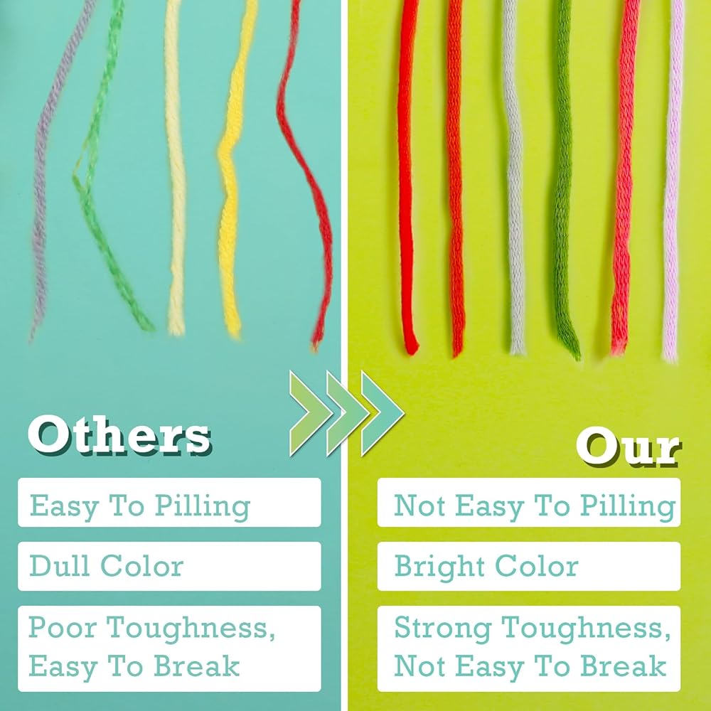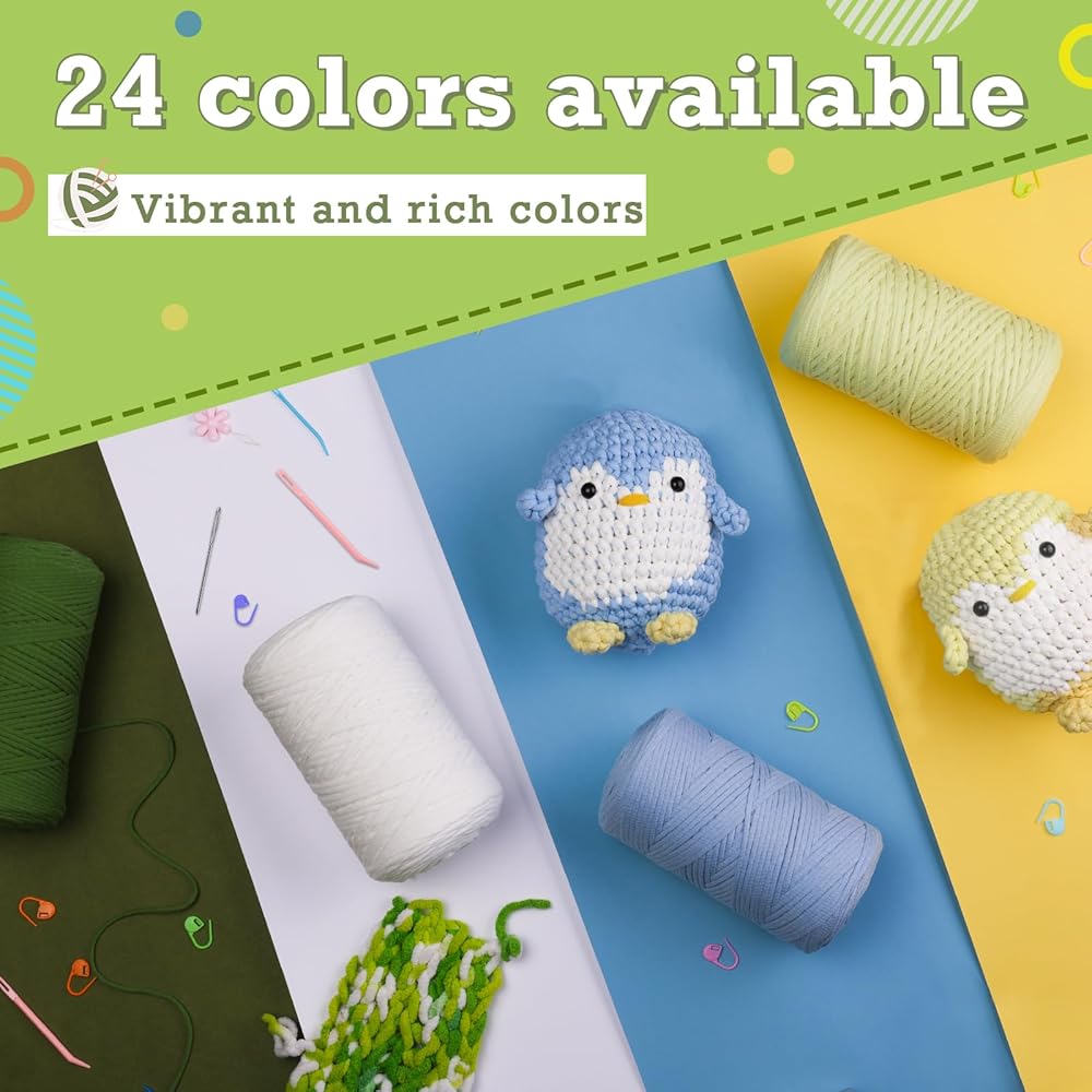 • 【24 لونًا للاختيار من بينها】يأتي خيوط الكروشيه الخاصة بنا مع 24 لونًا، سواء كان لونًا أساسيًا أو لونًا ساطعًا، يمكنك اختيار أي مزيج من الألوان التي تريدها. تتيح لك مجموعة متنوعة من ألوان الخيوط السميكة استخدام خيالك للعثور على أسلوبك الخاص وإنشاء مصنوعات يدوية فريدة من الخيوط