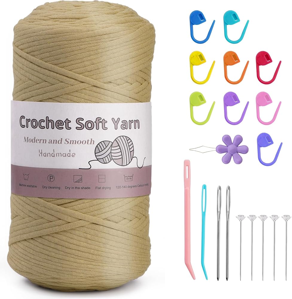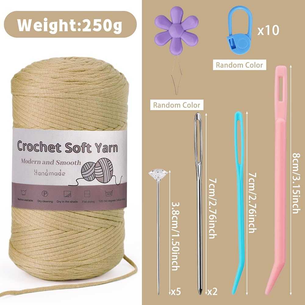 • 【 عبوة قيمة رائعة】تأتي مجموعة خيوط القطن الخاصة بنا مع عبوة واحدة من خيوط الغزل الناعمة الخضراء الزاهية، 250 جم/8.81 أونصة، 300 متر/328 ياردة، 10x أقلام تحديد الغرز، 2x إبر بلاستيكية (أزرق ووردي)، 5x دبابيس ماسية، 2x إبر حادة، 1 * خيط الديكور، هذه الملحقات الصغيرة ستساعدك على الكروشيه بشكل أسرع وأفضل.