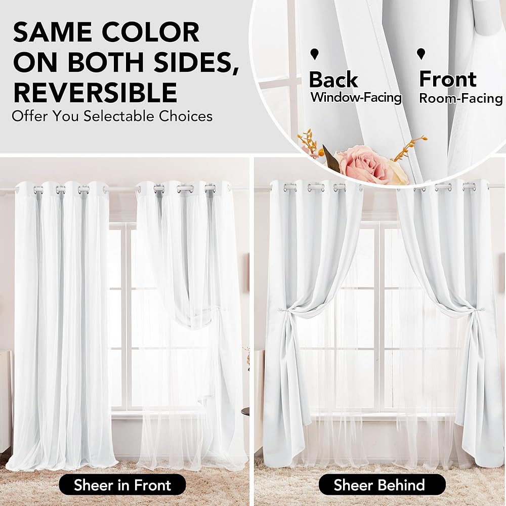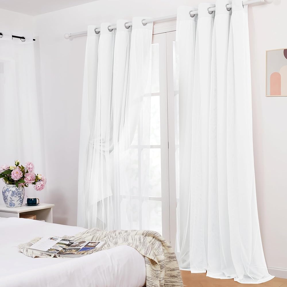 • وظيفة الطبقة المزدوجة: توفر لك ستائرنا أفضل ما في العالمين. يضمن النسيج المعتم الخصوصية، بينما تسمح الطبقة الشفافة بإضاءة محيطة ناعمة. بالإضافة إلى ذلك، تتيح لك المرونة في خيارات التعليق تخصيص مظهر مساحتك.