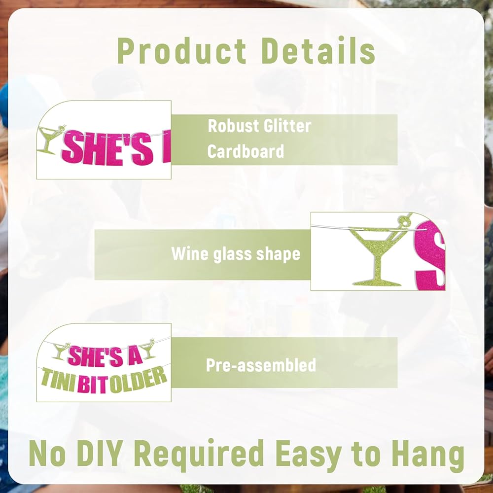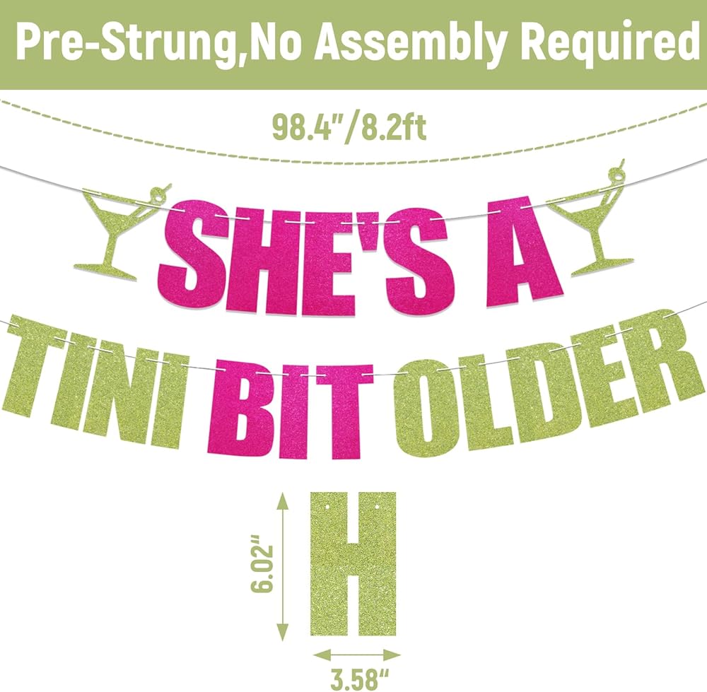 لافتة She's a Tini Bit Older - ديكورات عيد ميلاد مارتيني، إكليل Tinis & Weenies، ديكورات حفلات أعياد الميلاد العصرية باللون الوردي الساخن والأخضر اللامع