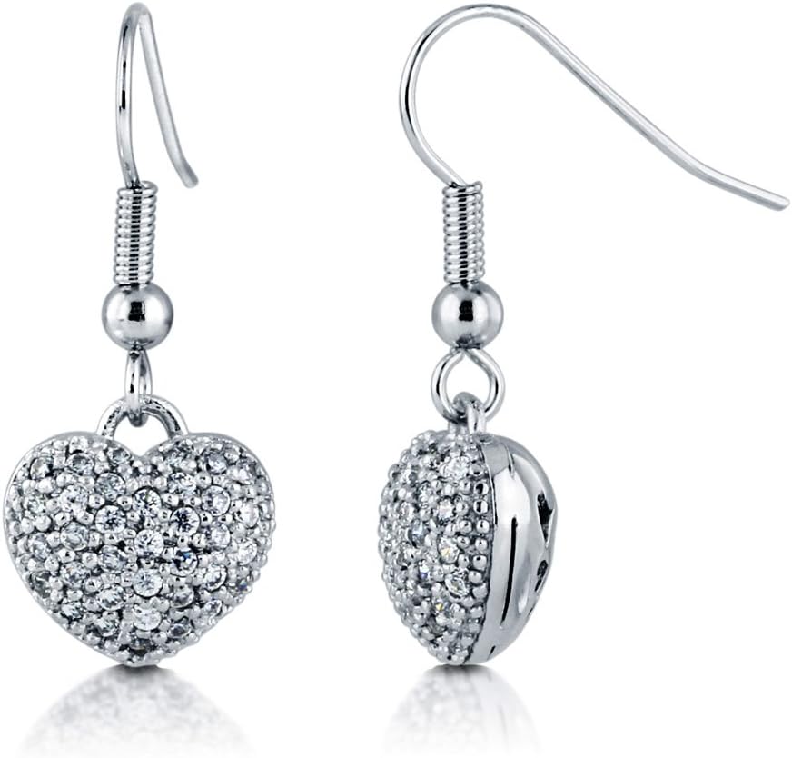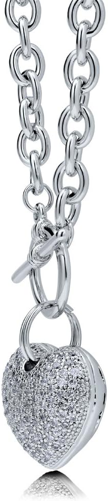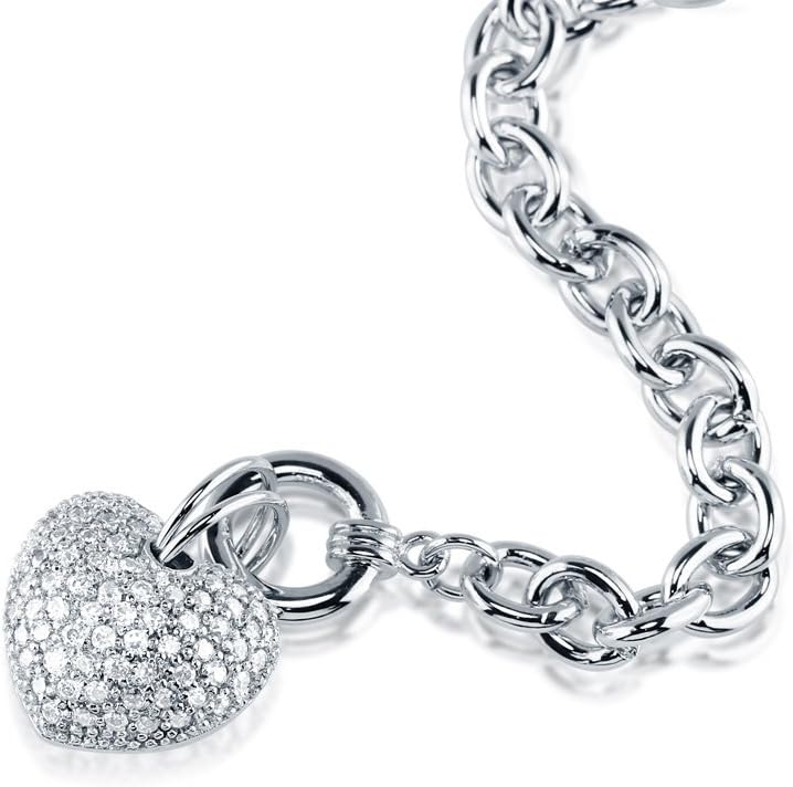 This 3-piece heart bracelet, earrings and pendant necklace set's simple yet chic design is a glamorous tribute to love. Crafted with silver-tone base metal alloy. Set with premium quality round cubic zirconia in pave setting. Set with premium quality round cubic zirconia in pave setting. Set with premium quality round cubic zirconia in pave setting. Bracelet measures 7" in length. Toggle clasp. Earrings measure 1.2" in length, 0.5" in width. Fish hooks. Chain measures 18" in length. Pendant measures 1" (L), 1" (W). Toggle clasp.
