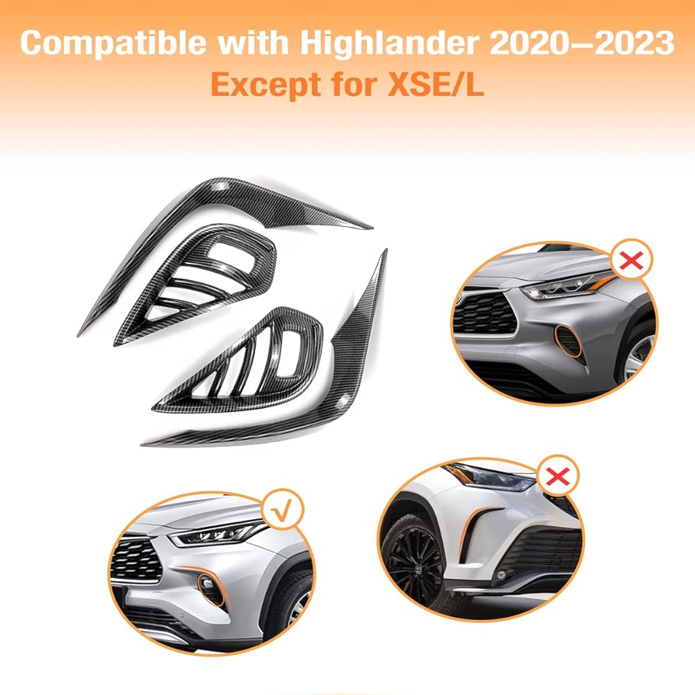 توافق محدد ► تم تصميم زخرفة ضوء الضباب تويوتا هايلاندر هذه خصيصًا لـ LE وXLE والمحدود والبلاتين (ليس لـ L&XSE) وهايلاندر الهجين 2020-2023. يرجى تأكيد طراز سيارتك قبل الشراء