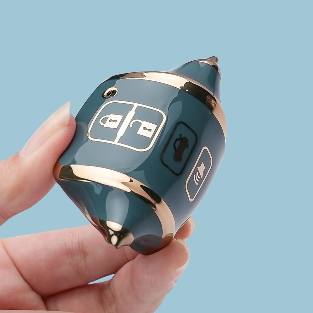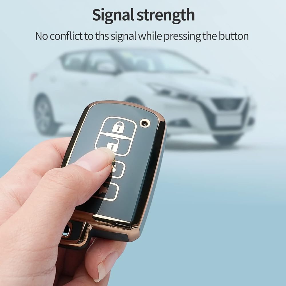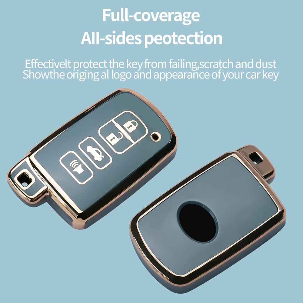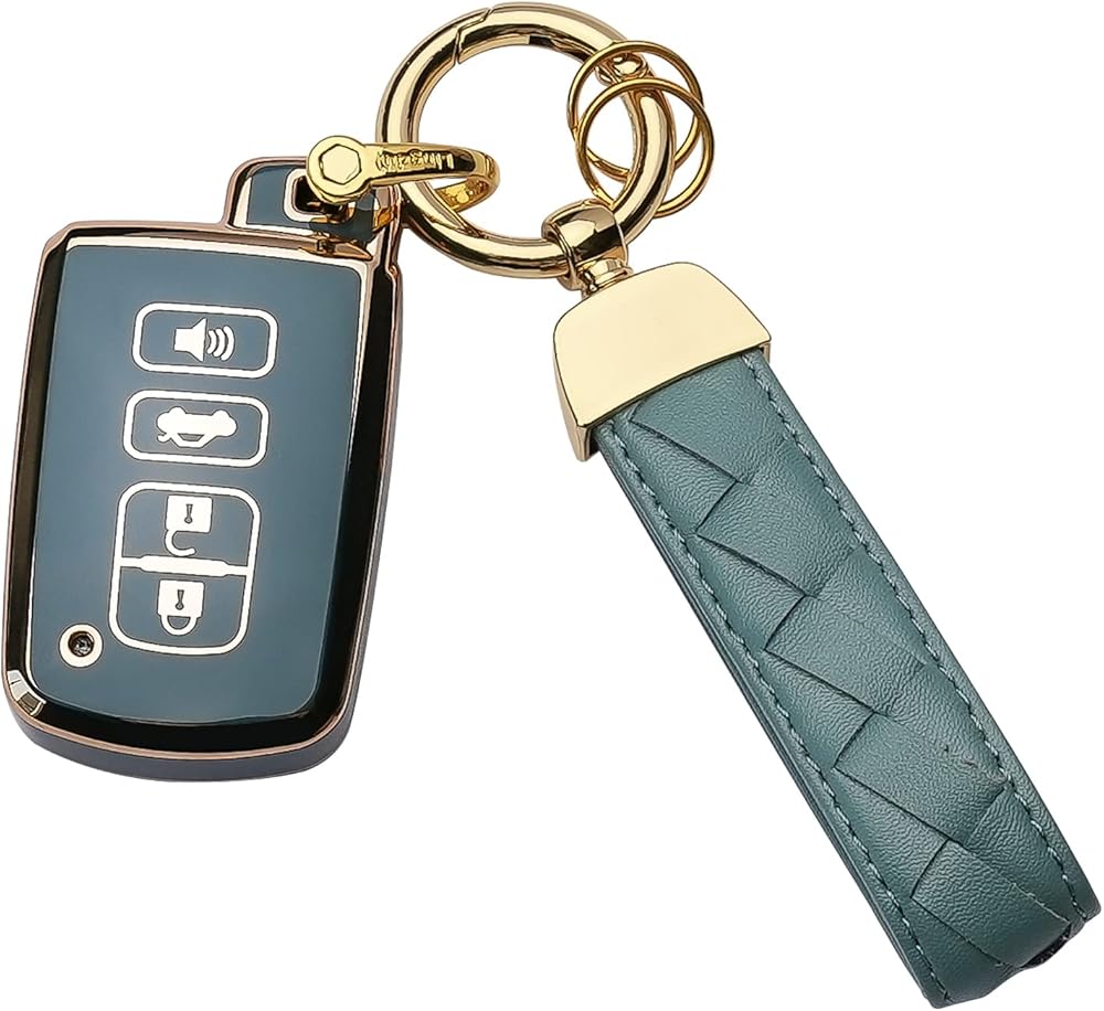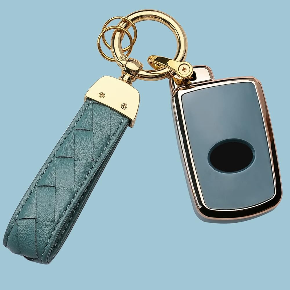 Material: Keychain Made With Premium Leather and Metal Key Cover Made with premium TPU. Super thin, soft, trending looking and pretty durable. Make your key fob look new and premium