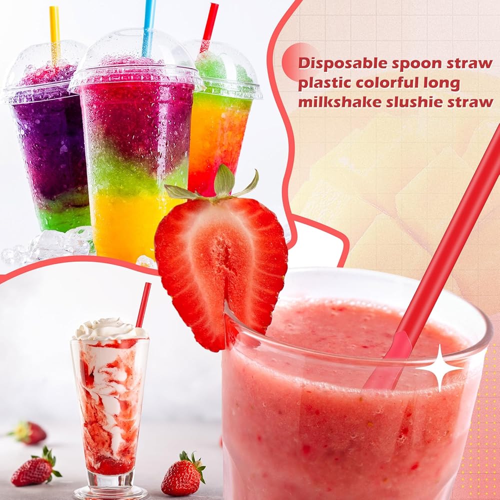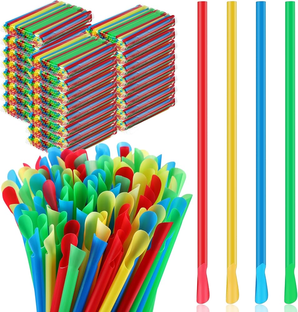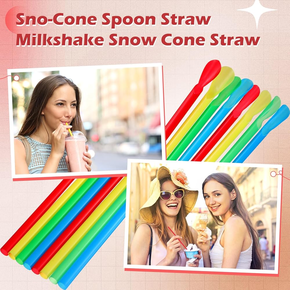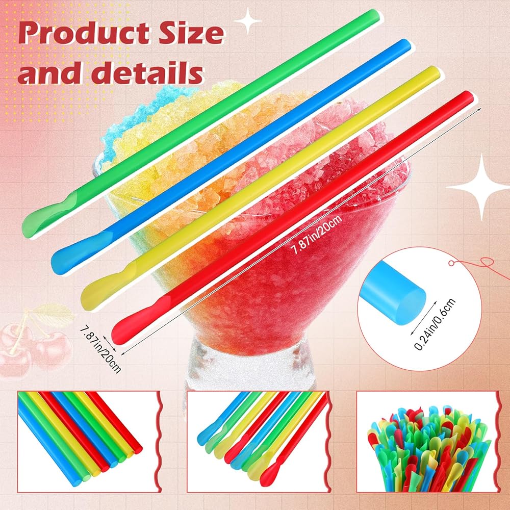 • تصميم ملعقة مبتكر ومراعي: تأتي هذه المصاصات البلاستيكية متعددة الألوان مع نهاية مصممة خصيصًا على شكل ملعقة للاستمتاع بتبسيط تناول الثلج أو الثلج المحلوق بطريقة سهلة، مما يوفر لك الكثير من الراحة