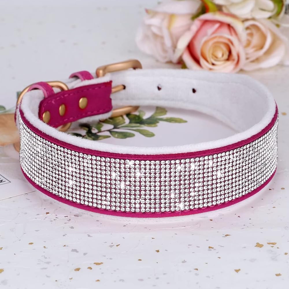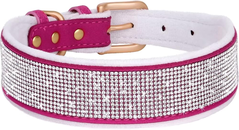 طوق للكلاب من حجر الراين من ديدوج مع بطانة ناعمة، أطواق للكلاب من الكريستال الماسي المتلألئ مع وسادة دافئة ناعمة للكلاب المتوسطة والكبيرة، وردي فاقع، مقاس M