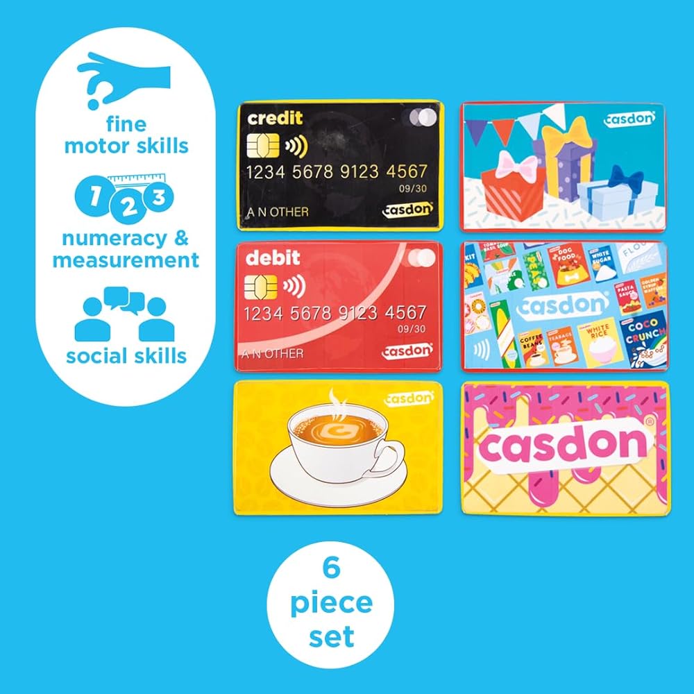 Introduce a touch of real-world magic to your child's imaginative play with the Pretend Play Cards Set! This enchanting collection includes six cards that mimic everyday financial transactions, from debit and credit cards to themed gift and treat cards. Each card is carefully designed to look just like the real thing, allowing your little one to immerse themselves in scenarios, like going on a pretend shopping spree or treating a teddy bear to a fantasy ice cream outing. Whether they're swiping their card at an imaginary store or acting as the shopkeeper, these play cards add an extra layer of realism to their adventures. Perfect for kids aged 3 and up, this set turns playtime into a fun learning experience by introducing the basics of finance and transactions.