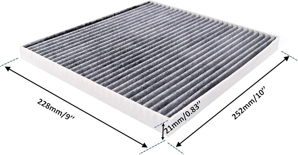 - سهولة التركيب: حجم مطابق تمامًا لمرشح كابينة OEM. سهل التركيب خلال 5-8 دقائق. يرجى قراءة سهم تدفق الهواء الموجود على الجانب قبل التثبيت.