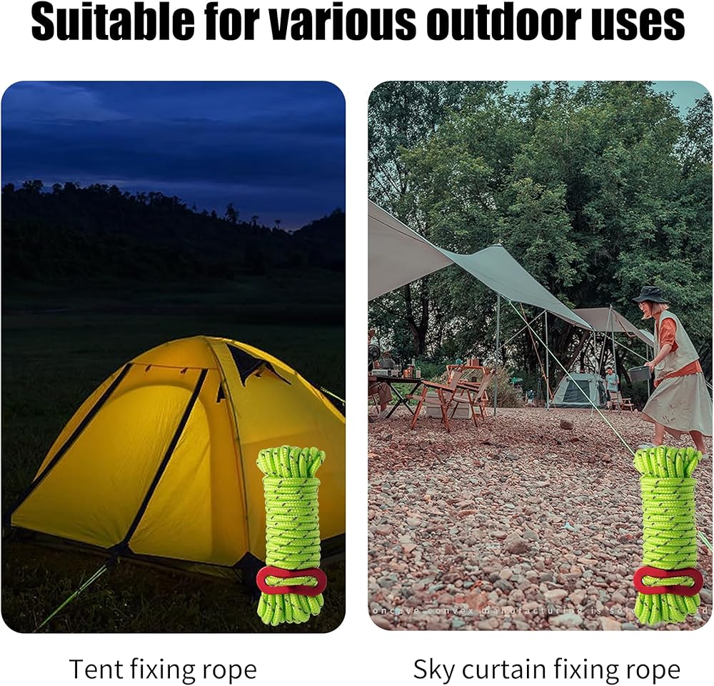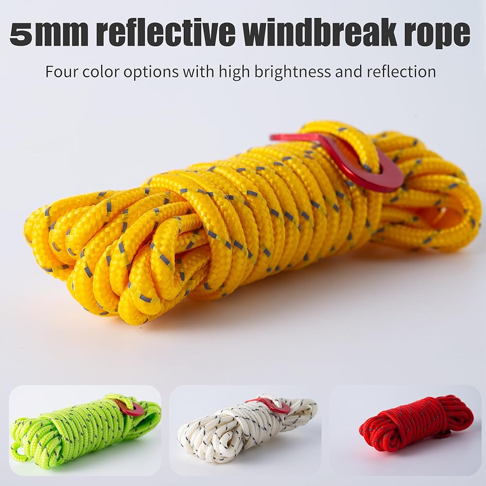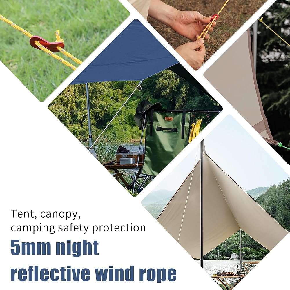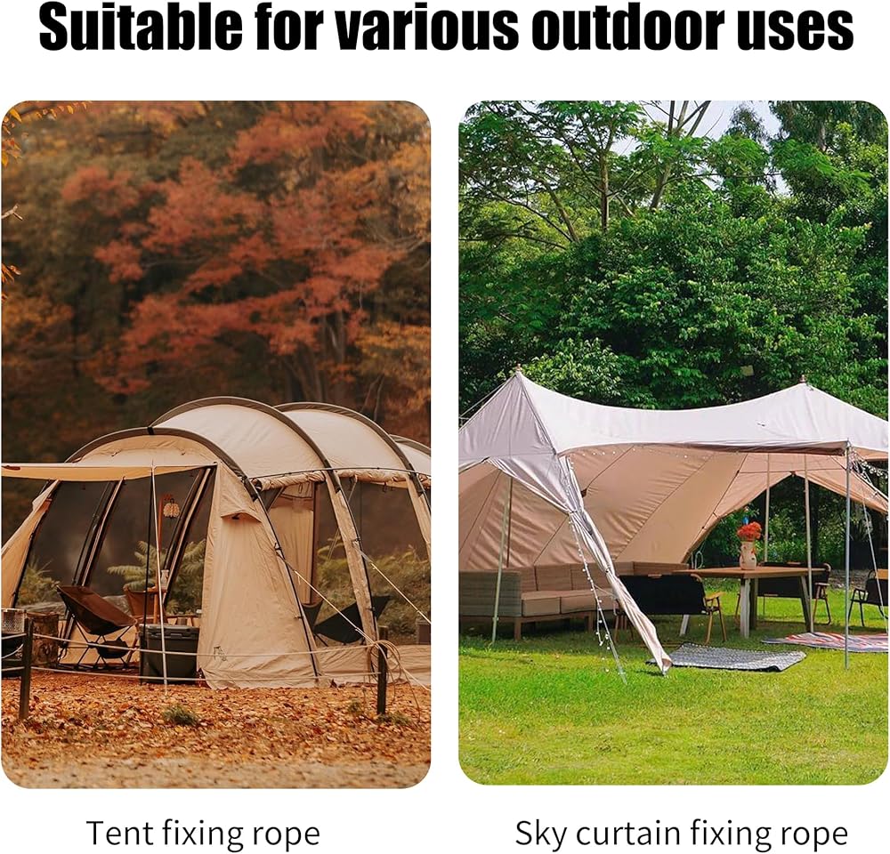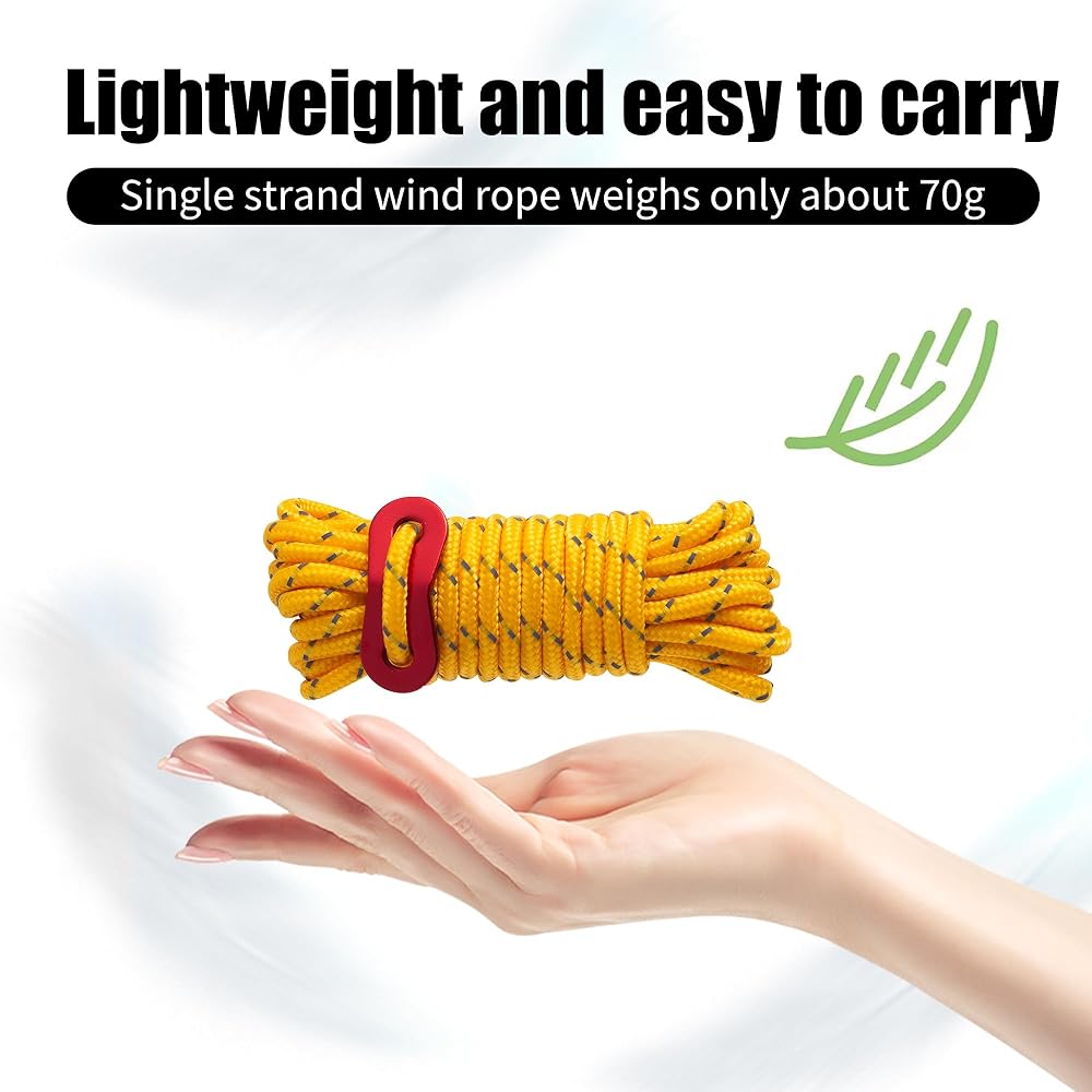 • 【حبل خيمة متين】تم نسج سطح الحبل من 16 قطعة من أسلاك البولي بروبيلين، ولن تمتص الخطوط الماء بسهولة ولا تتمدد تقريبًا. يمكن أن يتكيف امتصاص الماء المنخفض مع الطقس السيئ بشكل جيد؛ مناسبة للاستخدام في الأنشطة الخارجية