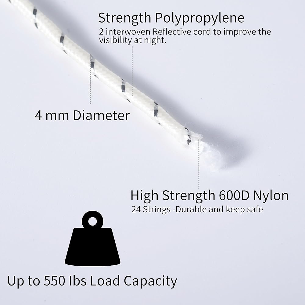 • 【خطوط تخييم قوية للغاية】 تتكون أسلاك الخيمة هذه من 16 سلكًا معززًا من البولي بروبلين المضفر 600D مما يجعلها قوية ومتينة، وليس من السهل كسرها، ومضادة للتمزق. دعم الخيمة، المظلة، المأوى، ثابت حتى في الطقس العاصف الثقيل. تحمل حمولة 220 رطلاً لجميع أنشطة الأغراض العامة