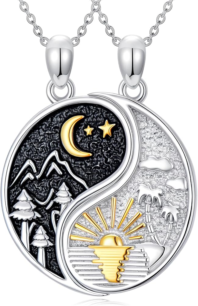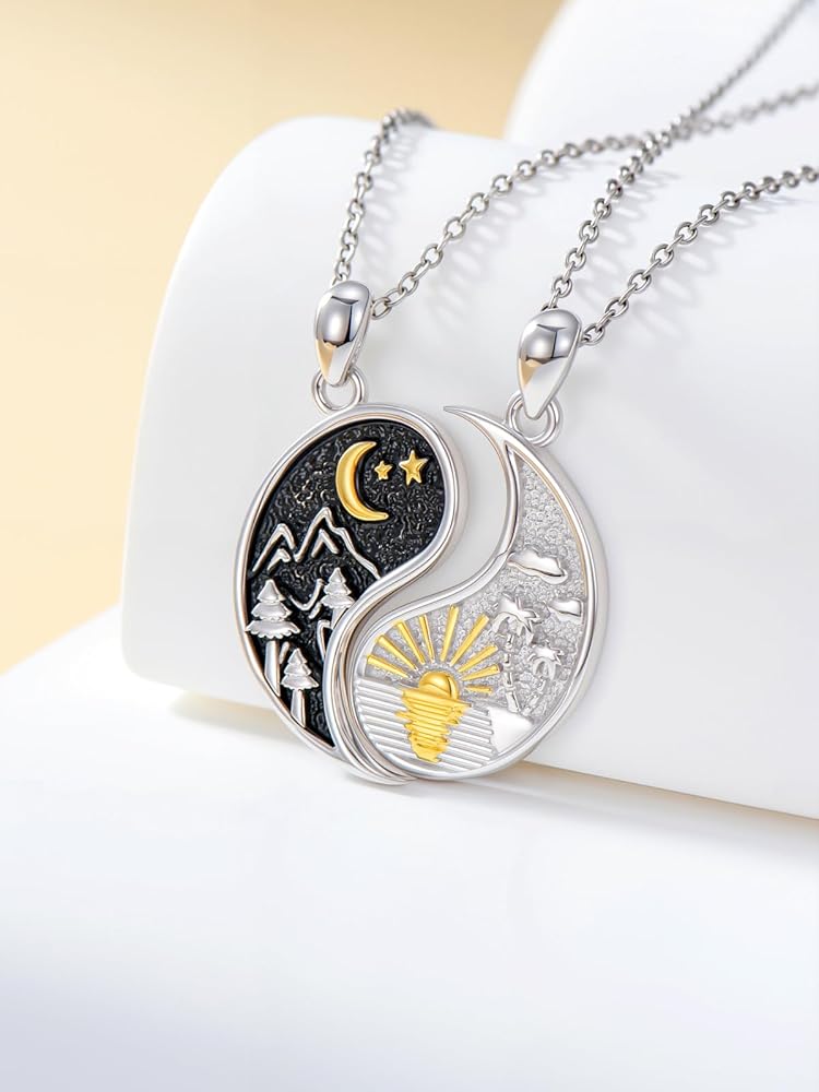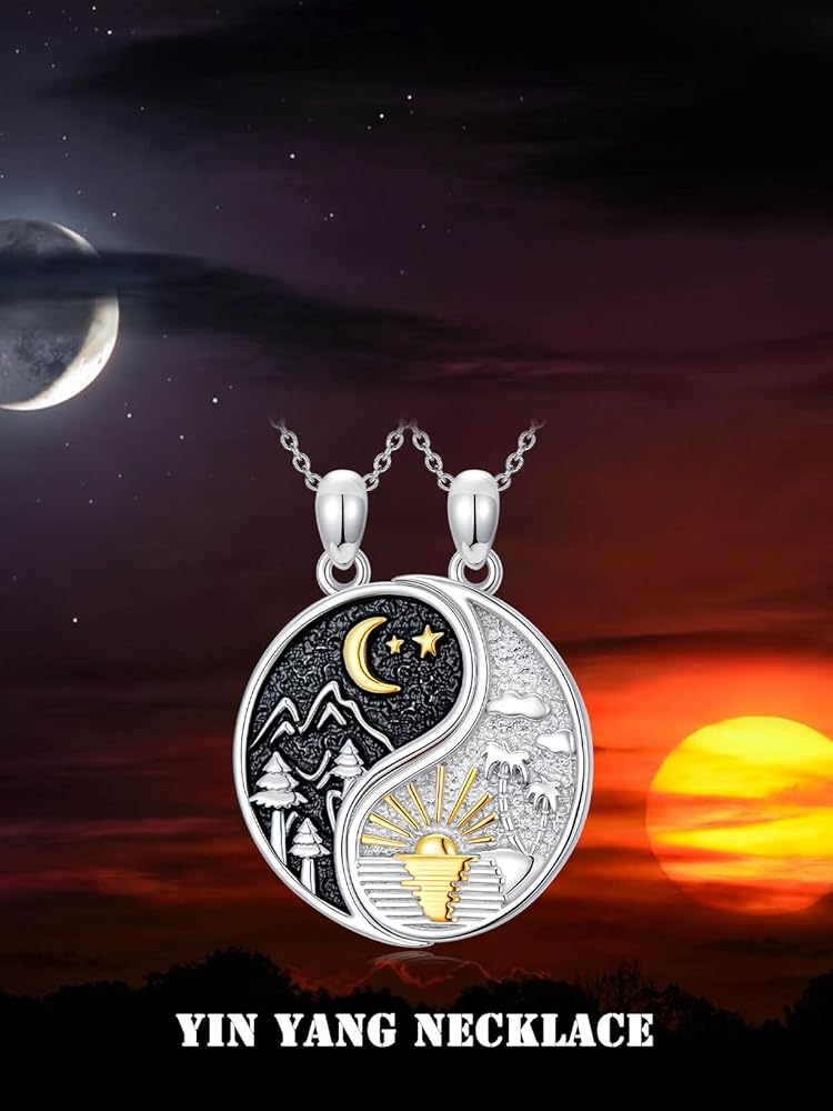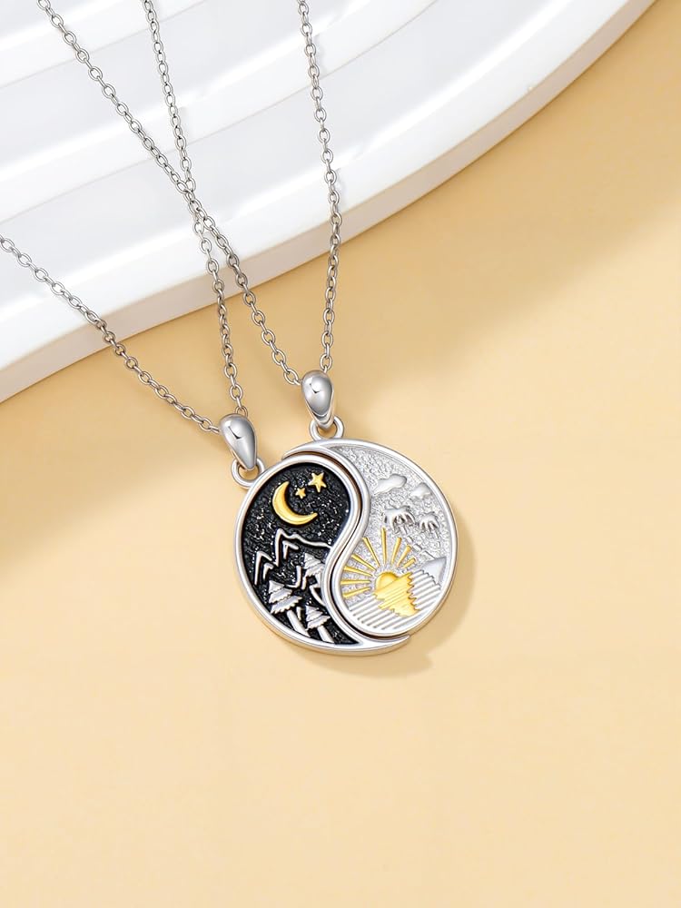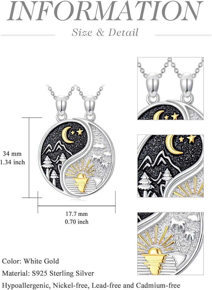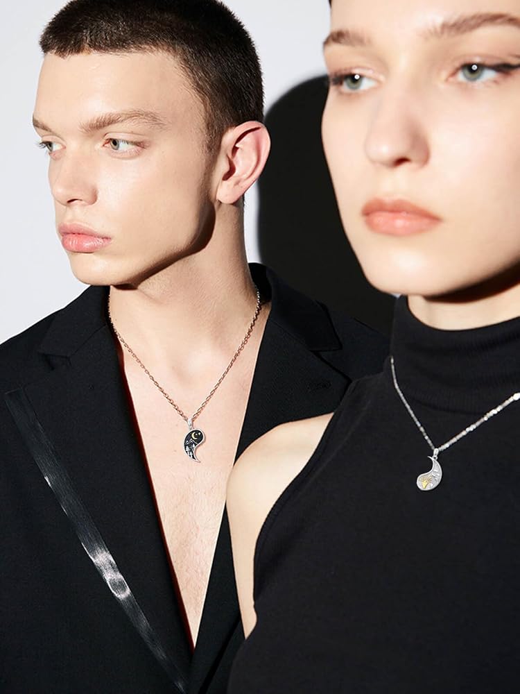 💕【مادة مجموعة القلادة】مجموعة القلادة المطابقة مصنوعة من الفضة الإسترلينية S925. لا يسبب الحساسية، وخالي من النيكل والرصاص والكادميوم. تتميز مجوهرات يين ويانغ بسطح أملس، ومريحة في الارتداء ومناسبة للبشرة الحساسة.