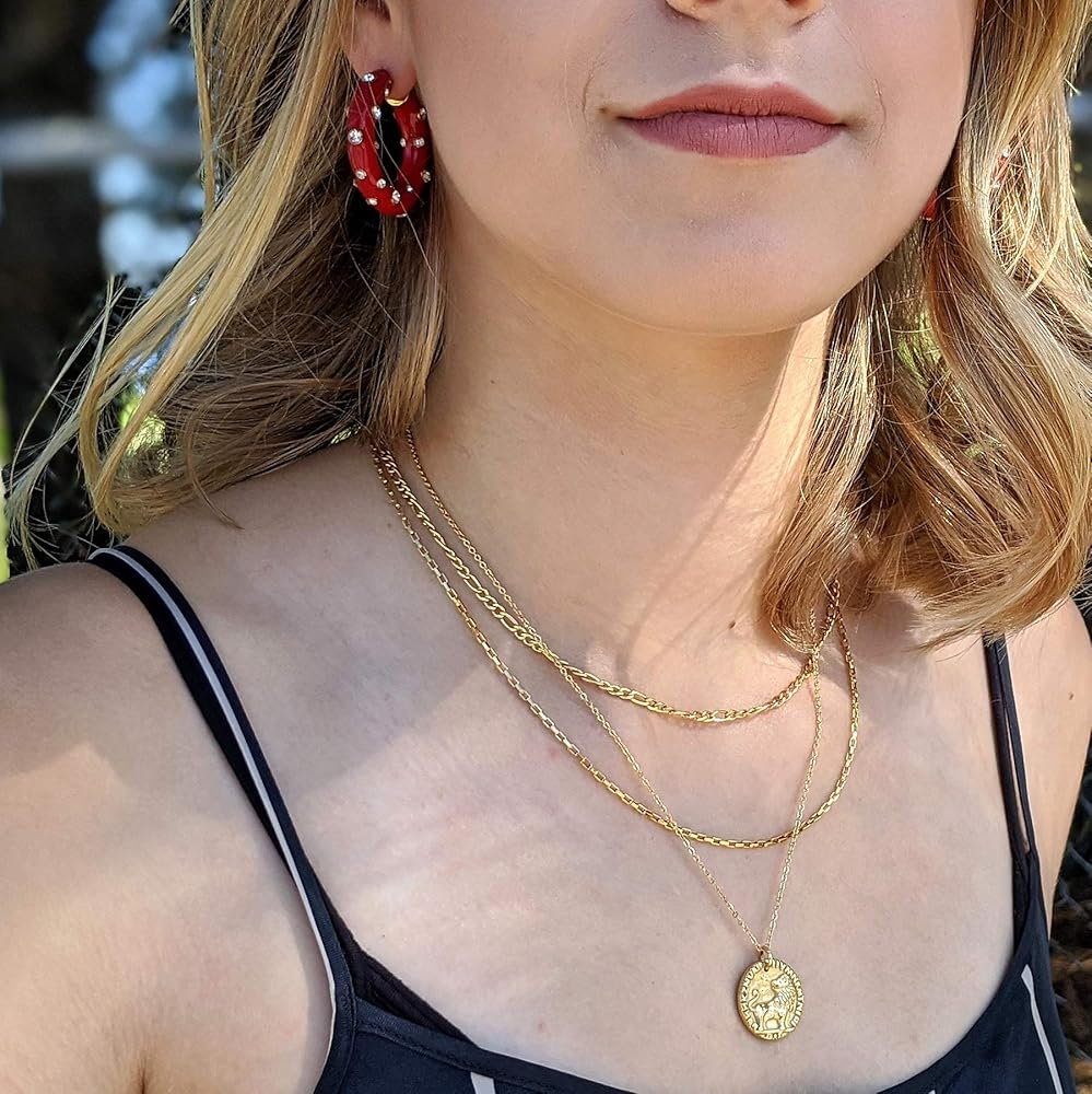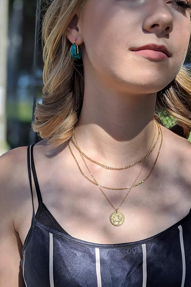 • مطلي بالذهب عيار 18 قيراط على الفولاذ المقاوم للصدأ (خالي من النيكل ولا يسبب الحساسية) - طلاء سميك للقلائد (مقاوم للتشوه) والذي سيكون في صندوق المجوهرات الخاص بك لسنوات قادمة!