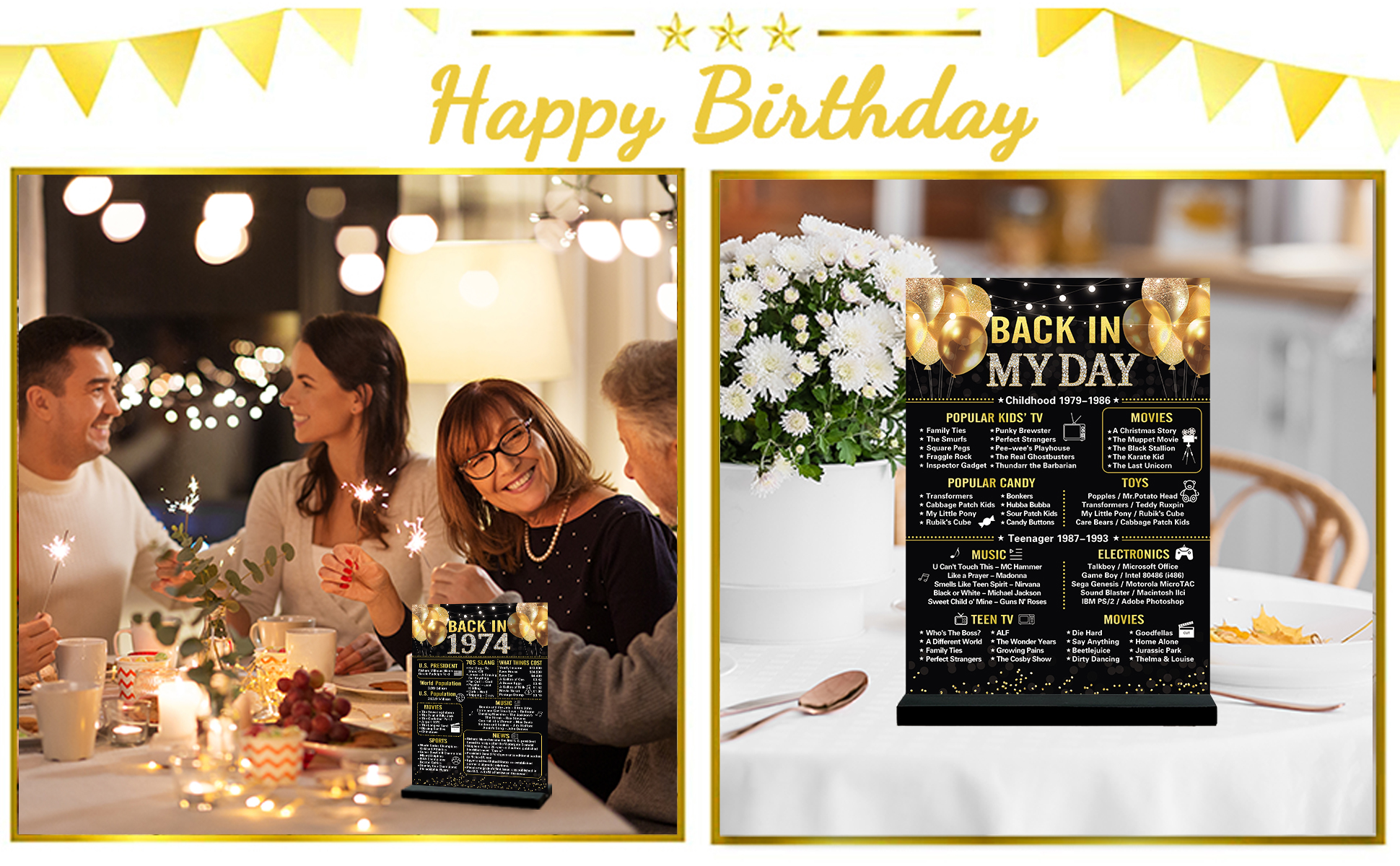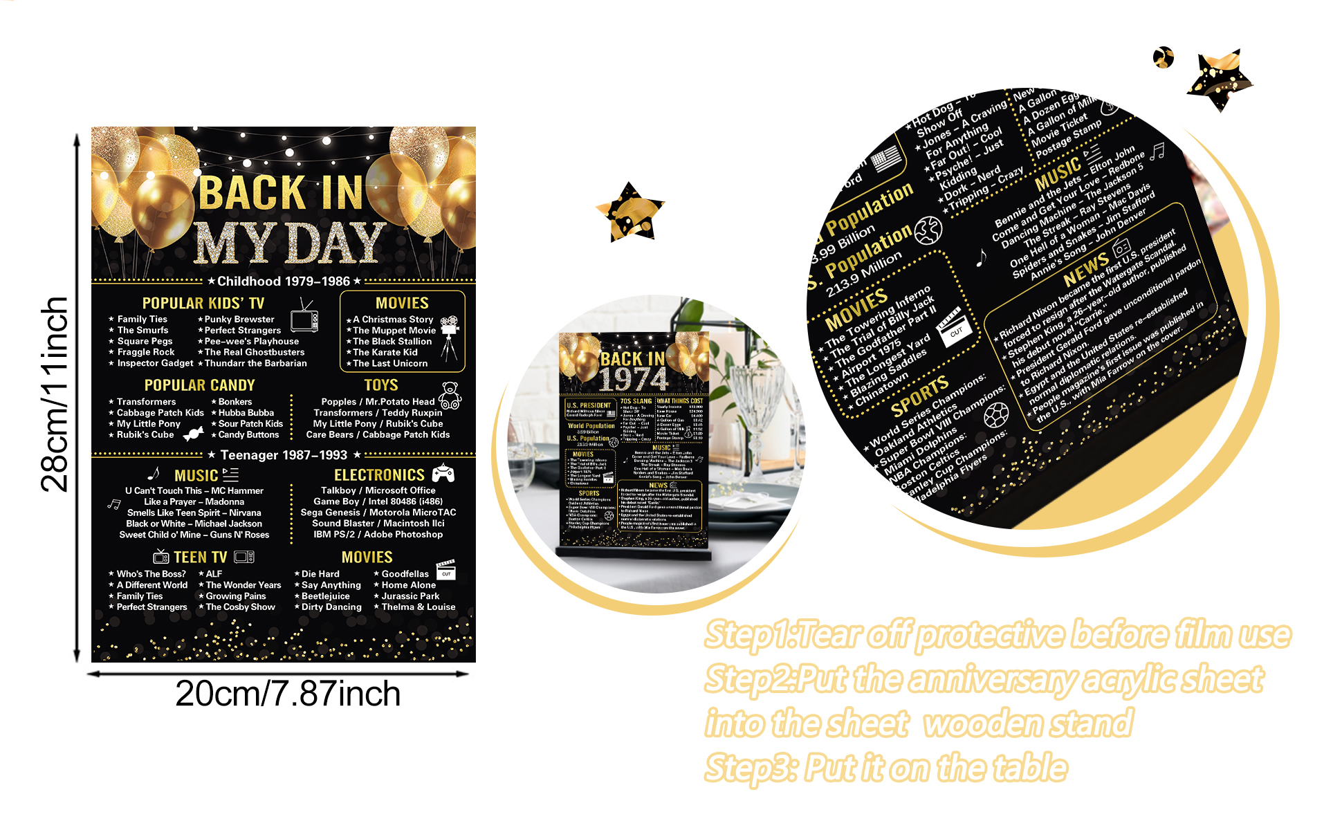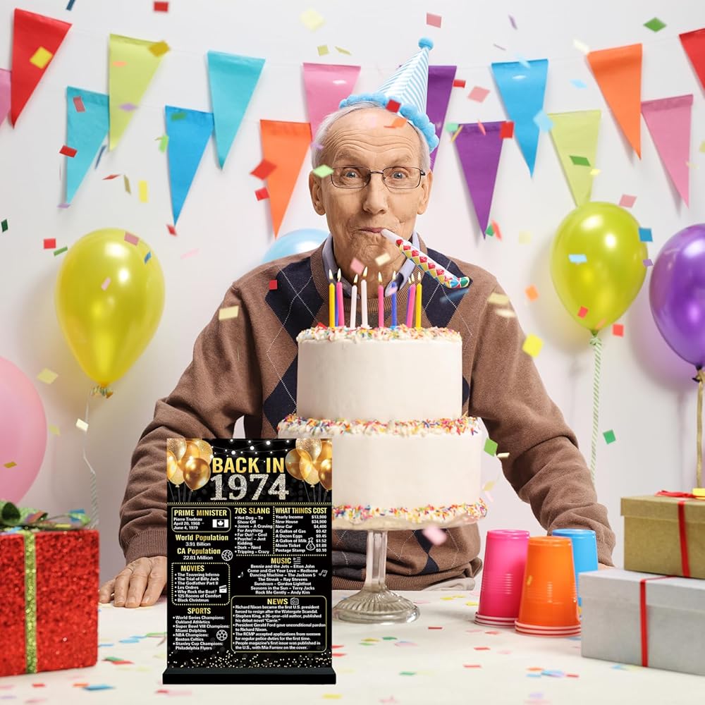 ⭐【عيد الميلاد الخمسين】تتضمن العبوة علامة أكريليك أنيقة عتيقة مقاس 7.9 × 11 بوصة من عام 1974 وحوامل خشبية سوداء. تطبع لافتة ديكور عيد الميلاد الخمسين ما حدث في عام 1974 لإضافة المرح إلى حفلتك وتتيح لك العودة إلى يوم 1974 والهتاف لمدة 50 عامًا.