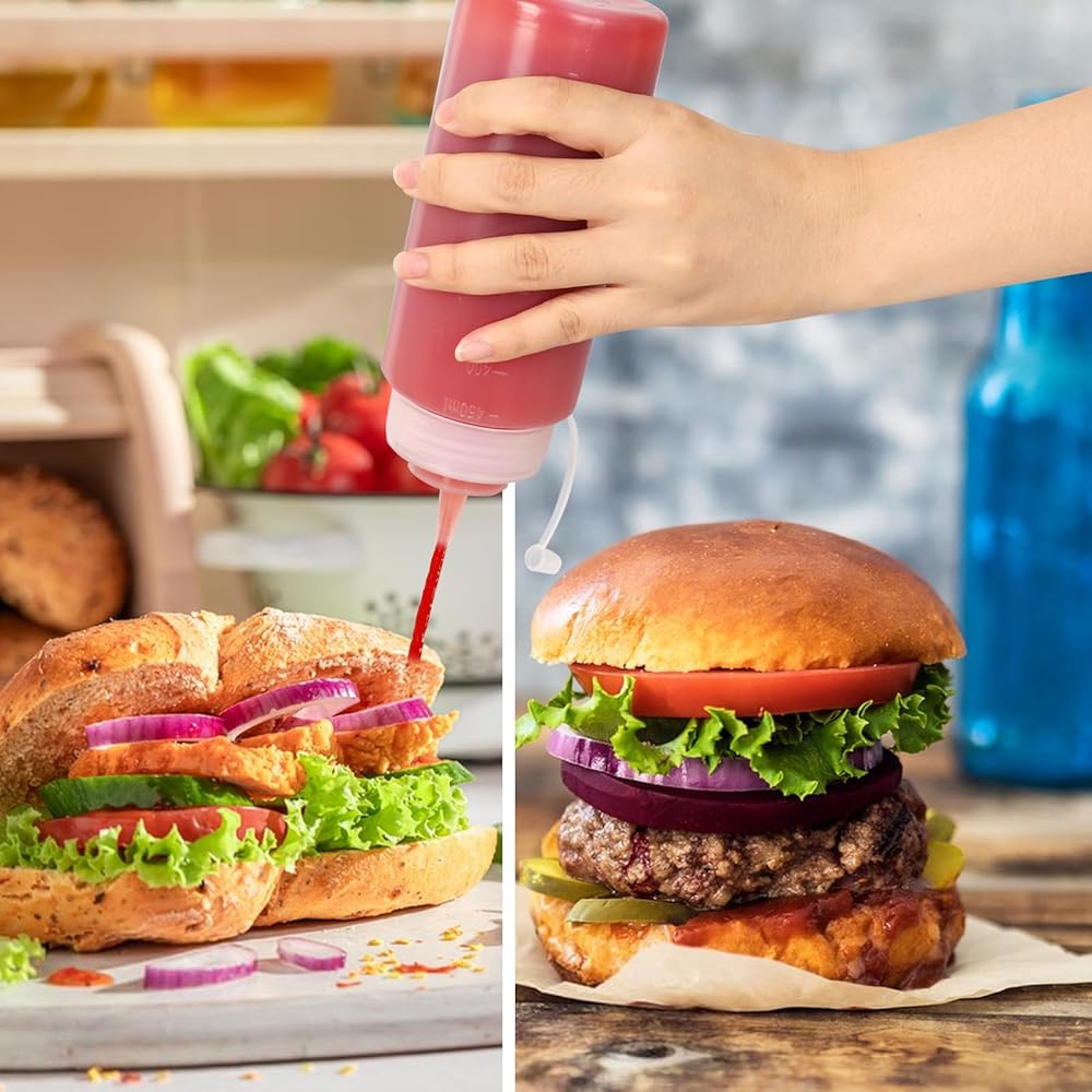 مادة LDPE: زجاجة الضغط البلاستيكية سعة 16 أونصة مصنوعة من مادة LDPE الناعمة. حجمها المتوسط يجعلها سهلة الحمل، مما يجعلها خيارًا ممتازًا للاستخدام الخارجي والمنزلي. مثالية لتخزين مجموعة متنوعة من التوابل، مثل صلصة الشواء والخردل ومعجون السمسم وصلصة الشوكولاتة والمربى والعسل وشراب القيقب وصلصة الطماطم. ، صلصة سلطة، و صوص فلفل حار.