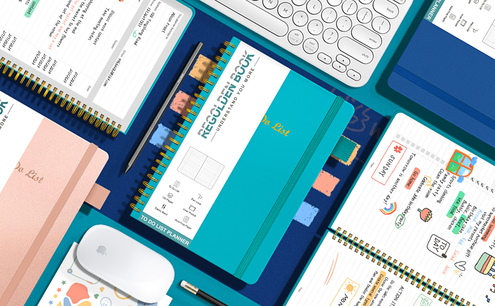Regolden-Book To Do List دفتر ملاحظات بغلاف صلب، مخطط قائمة المهام لتنظيم مهامك اليومية، مجلة قائمة مرجعية يومية للعمل، لوازم مكتبية للرجال/النساء، جيب، حلقة قلم، 160 صفحة (6 بوصة × 8.5 بوصة)