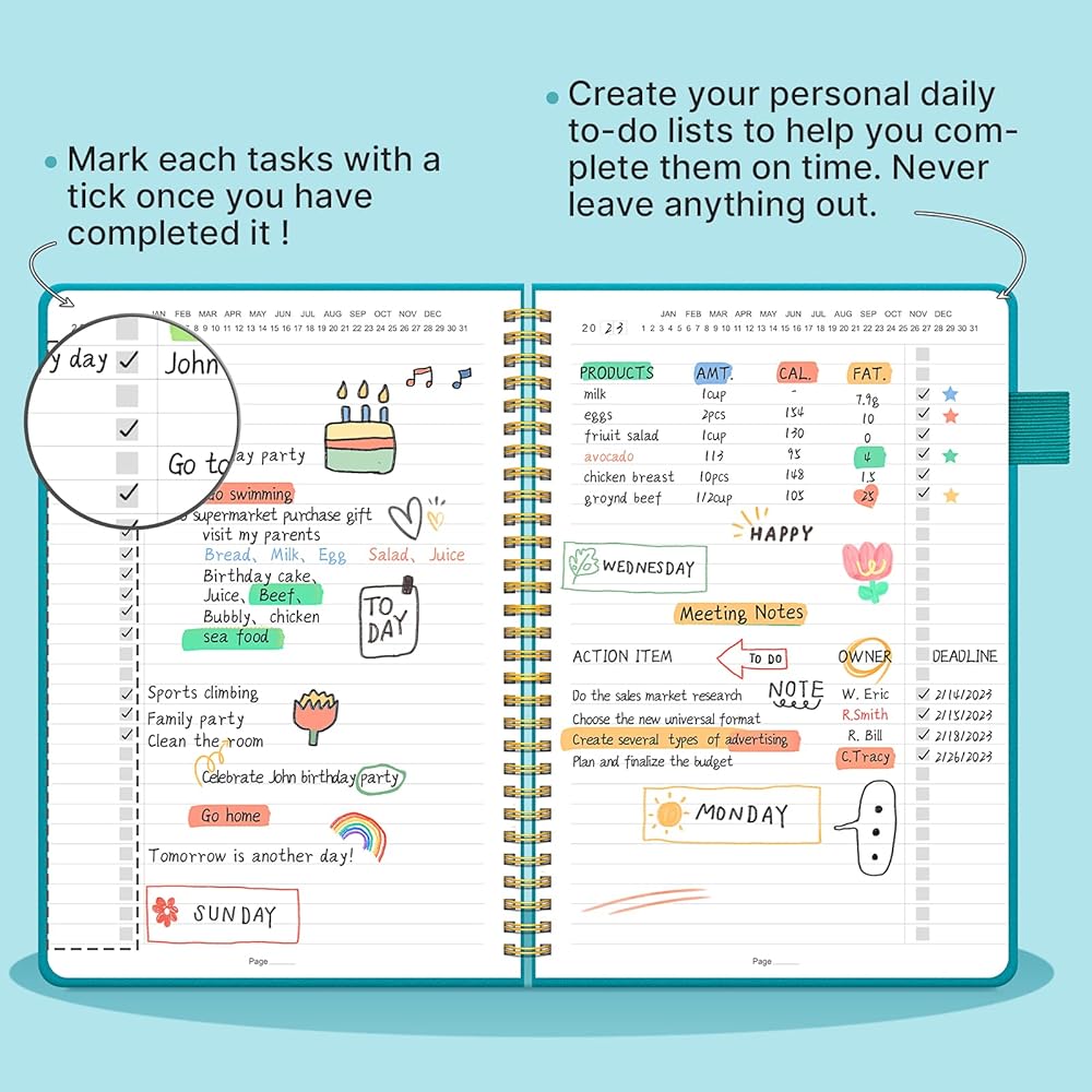 ✍الحجم المثالي الشائع - حجم دفتر الخطة هذا هو 6 × 8.5 بوصة ويتضمن 160 صفحة وهي كبيرة بما يكفي لجدولتك اليومية، وهي مناسبة للاستخدام في العمل والمكتب والمنزل والسفر المدرسي. هي هدية مثالية.