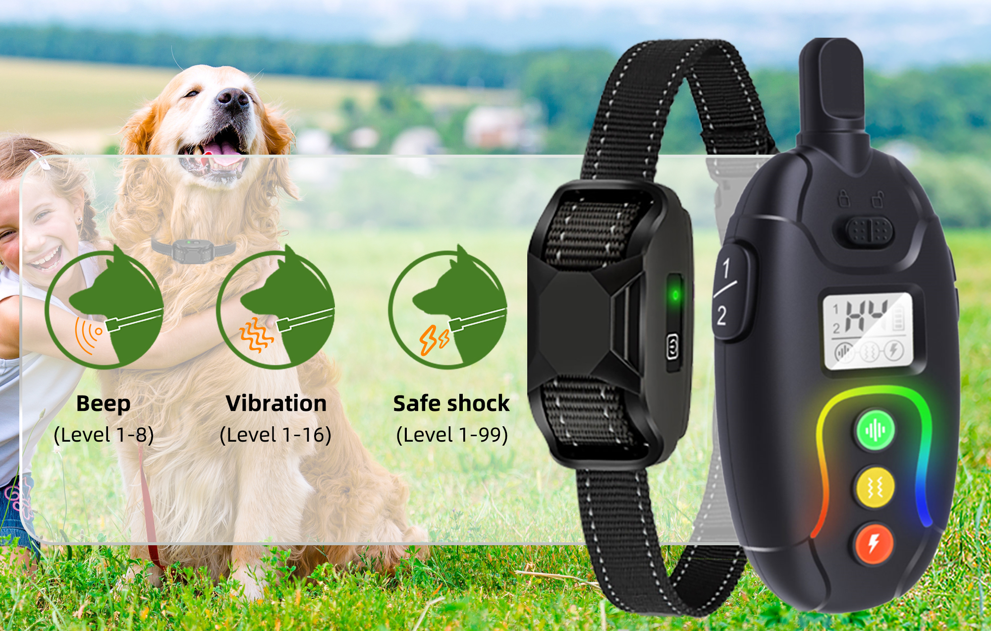 🐶إعداد دقيق للوظيفة: 99 مستوى صدمة ثابتة + 16 مستوى اهتزاز + 8 نغمة تحذير
