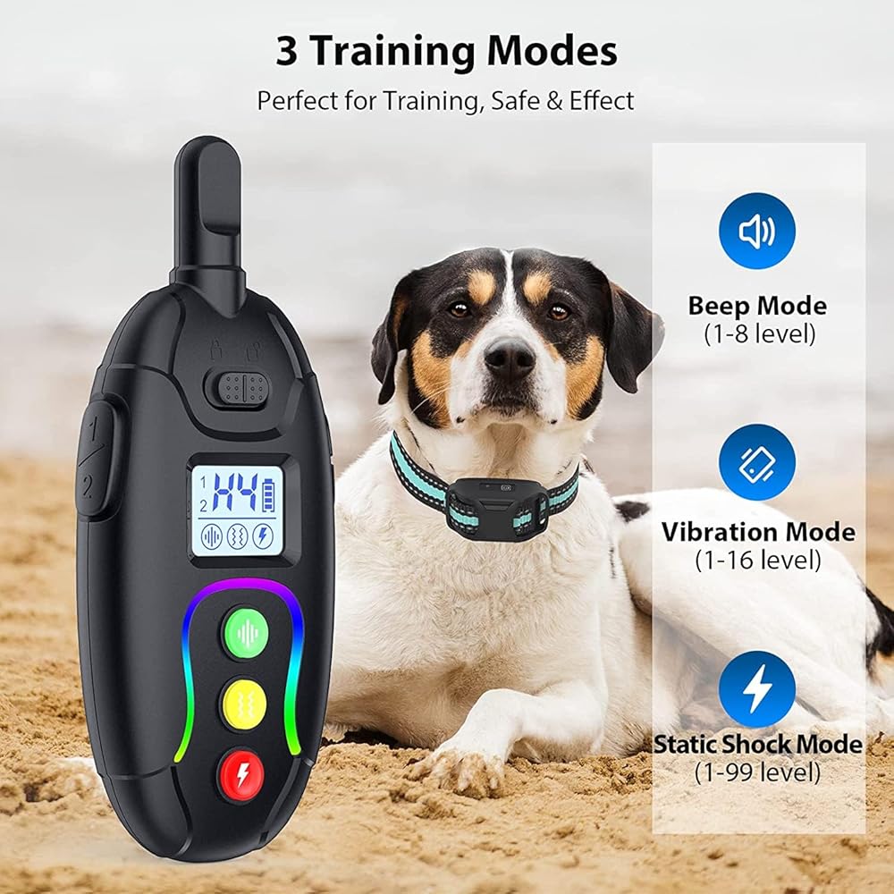 طوق صدمات للكلاب - (8-120 رطل) طوق تدريب كهربائي للكلاب قابل لإعادة الشحن مقاوم للماء مع جهاز تحكم عن بعد للكلاب الصغيرة والمتوسطة والكبيرة مع أوضاع صدمة آمنة للاهتزاز